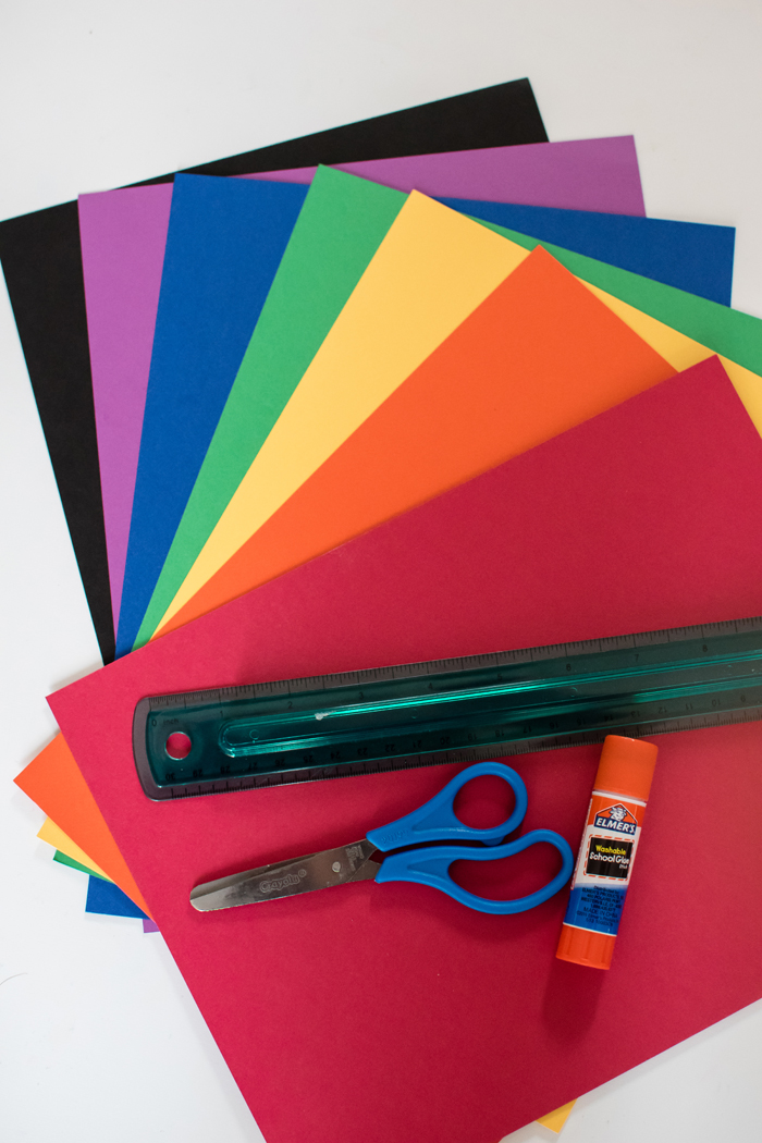 Noah's always been into rainbows.  And who can blame him, rainbows are so pretty!  While we've made our fair share of St. Patrick's Day and rainbow crafts (Fruit Loops Rainbow, Rainbow Pot of Gold, Rainbow Clouds), we couldn't resist making another one this year.  Last week, we grabbed our scissors, glue, and sheets of card stock in all the colors of the rainbow and got to work!