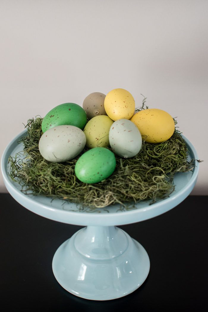 Another repeat decor item is my cake stand topped with a nest of eggs.  If you'd like to make your own, I shared exactly how I made mine in last year's post.  And if you are extra crafty, you could even paint your own eggs!