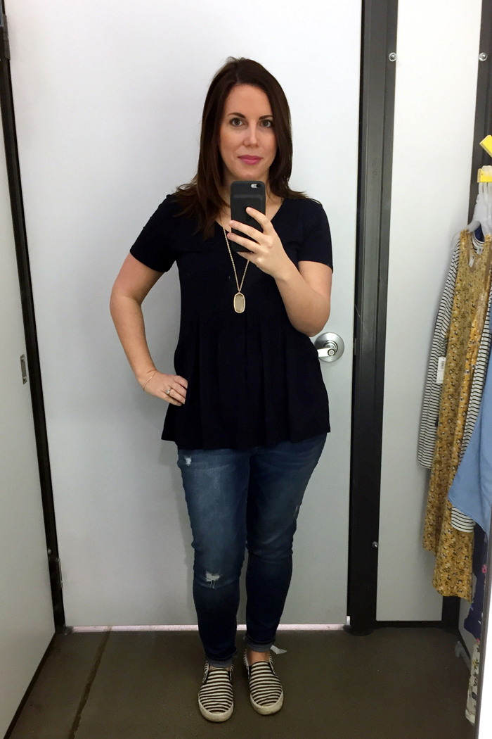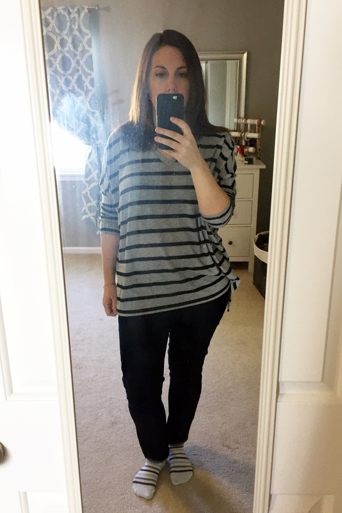 Swim school, grocery shopping, and then home to do laundry.  I used to wear these Express shirts all the time and was surprised that I hadn't reached for them recently.  I also realize I need to clean my mirror!