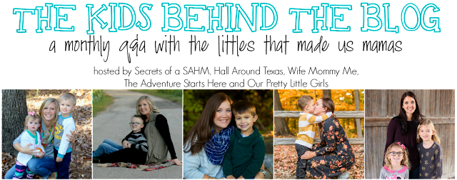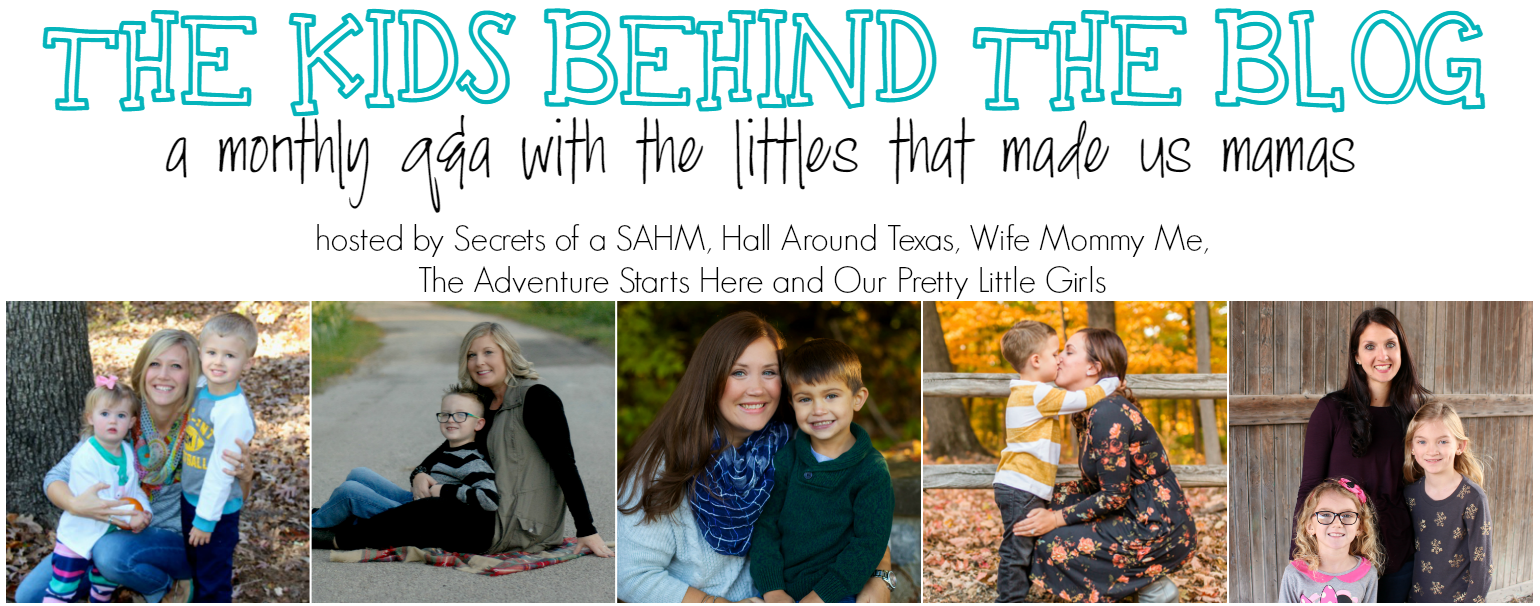 As much as I love asking Noah the questions each month, I also have so much fun reading what your and my co-hosts' (Crystal, Beth, Jessica, Stephanie) kids have to say each month! And in case you are new to the linkup, here's a little background information. We came up with this idea because we are such huge fans of "The Guys Behind the Blog" and wanted to create something similar to do with the "kids that made us mamas".  Each month, we have a set of questions to ask our kid(s) and we will share their answers on our blogs. We sure hope that you will do the same and link up with us each month! We can't wait to read what your kids have to say!