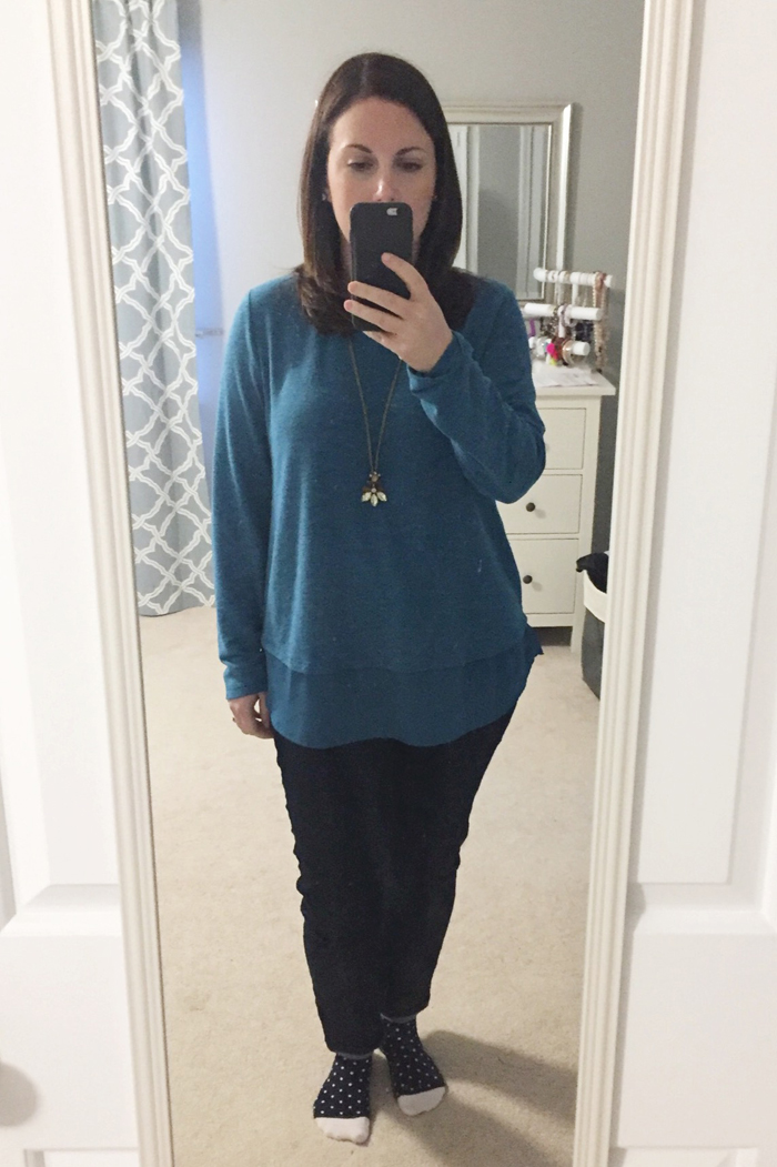 I've been making an effort to wear more of my closet.  I found that there are a few pieces that I tend to grab for more often while leaving other pieces virtually unworn.  It's not that I don't like them, I just gravitated towards my newer pieces.  By taking photos of my daily outfits, I had physical proof of what I wear most.  This past month, I separated my closet by things I had already worn (and photographed and shared) from the tops I had yet to wear this winter.  I then made an effort to reach for those neglected pieces first.  It was rather refreshing and felt like I had a new wardrobe!  Just goes to show you that it's nice to wear some of your oldies but goodies!  And if you still don't want to wear them, then it's probably time to donate it.
