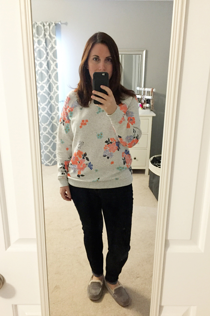 Other than bringing Noah to school, we spent the day at home.  And since the temps were still low, I love how this sweatshirt keeps me warm but makes me feel ready for Spring!