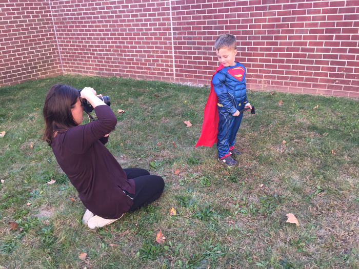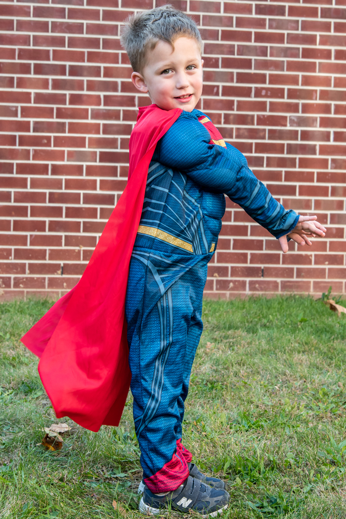 Now for the photo shoot. Leave it to Chris to remind me we had to comb his hair so he had a little curl in front. And to point out that at first I had it going the wrong way haha! While taking photos, it got a little windy, which led us to being obsessed with having the wind catch his cape so it looked like he was flying. We never were really successful, but it sure was fun trying!