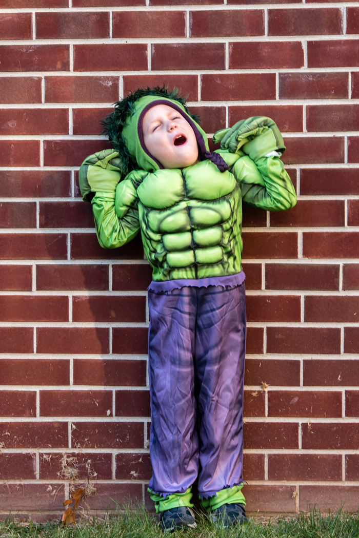 Noah being Hulk involves a lot of yelling "Hulk Smash" and banging things. During the photo shoot, he got a little excited and punched the ground a little too hard. We had to remind him to just "pretend" and punch a little softer next time. But my favorite part was when he did this pose all on his own. This reminds me of when Hulk gets angry and actually turns into the green Hulk!