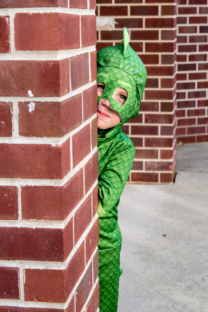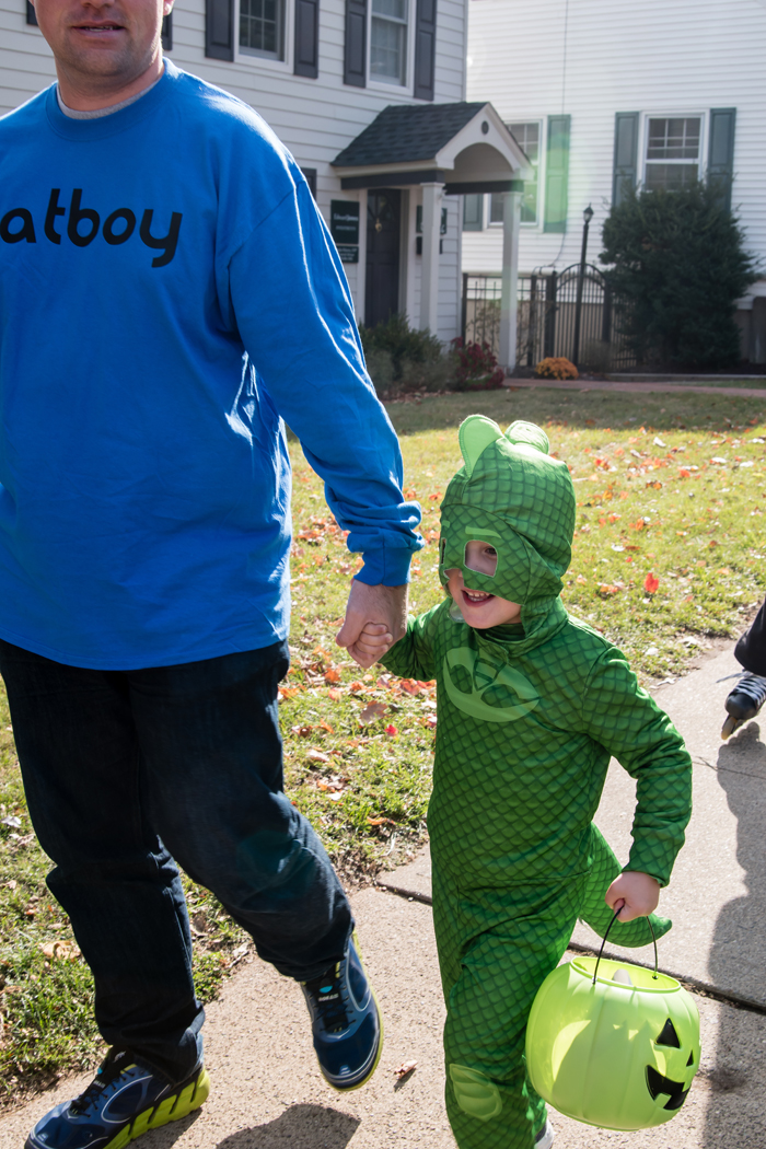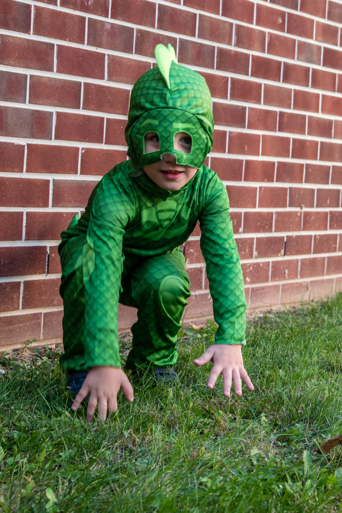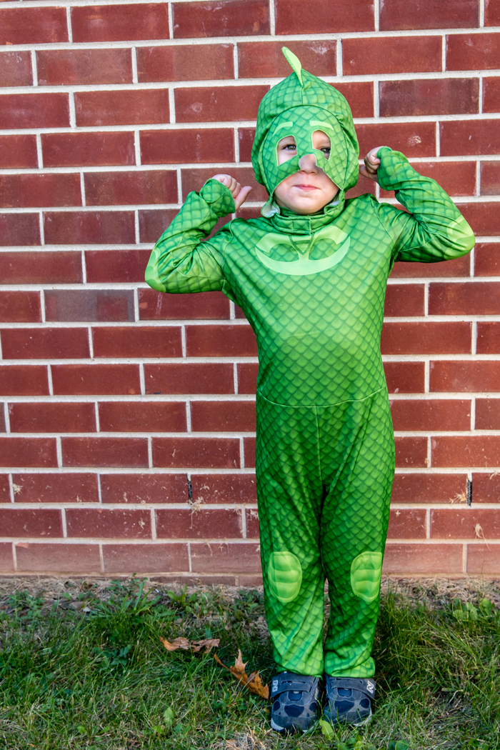 If you ask Noah what his favorite costume out of three is, it would hands down be Gekko from PJ Masks! We had seen this costume online early on but they were always out of stock (even in August/September). We did end up finding it at Kohl's one day, but they didn't have Noah's size. Thankfully, Grandma was then on the case and found one in an actual Party City store! She brought it right over, Noah immediately put it on, and started crawling all over the floor pretending to be Gekko... it was the cutest thing ever! He's worn it multiple times at home since then and loves pretending to be the pajama wearing lizard. So even without Halloween, this costume is totally worth it!