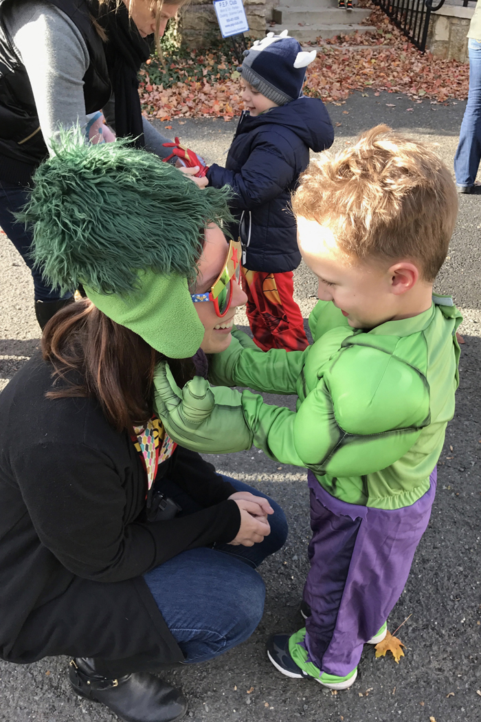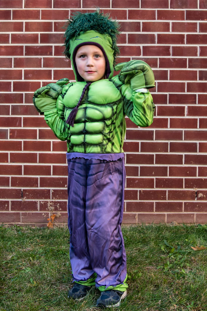 Finally, Noah modeled his Hulk costume. When we went to the store to try it on, we quickly realized that Noah wouldn't want to wear the mask that comes with the costume. So instead, we found this Hulk hat and thought it would work out perfectly. We also got him the extra Hulk hands to complete the outfit. While it is kind of pieced together, I really love how it turned out!