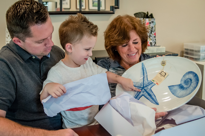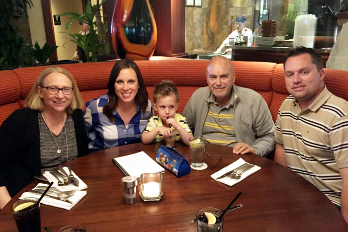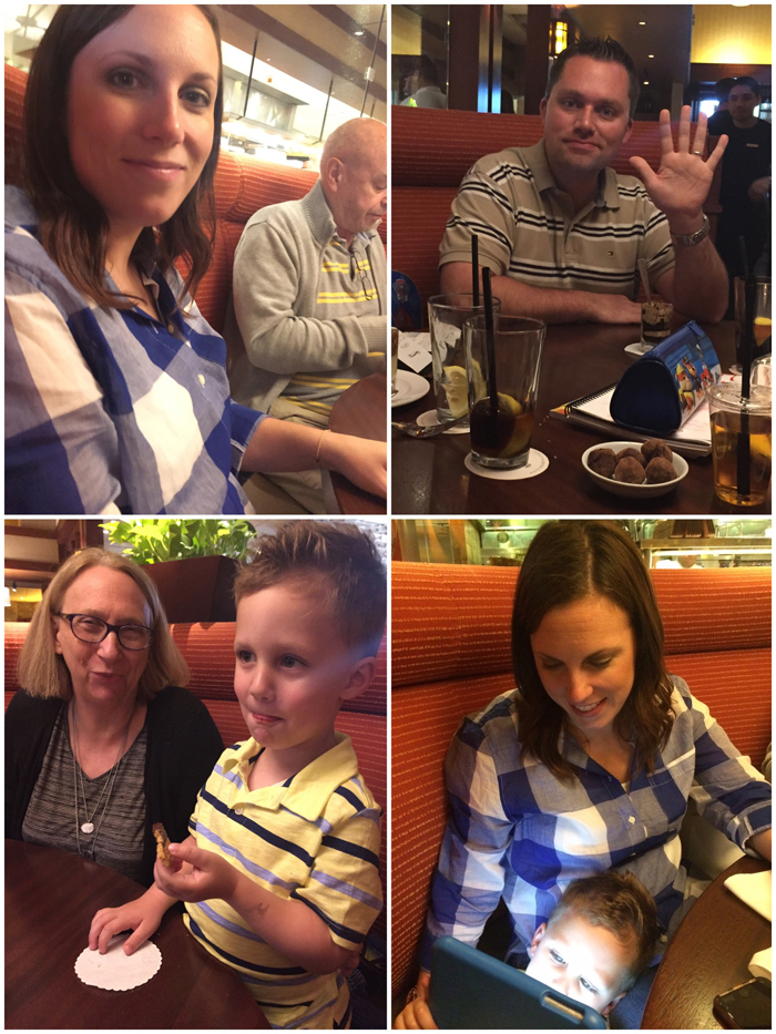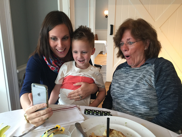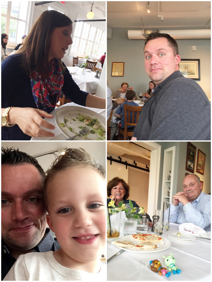 On Saturday, we got together with Chris' parents. We went to another new (to us) restaurant, Washington House, for lunch and then back to our house for some dessert and gifts. Noah once again grabbed the camera and took some candid shots of our table. We also showed Nonna all about Snapchat and had a pretty good laugh at ourselves with all the funny filters!