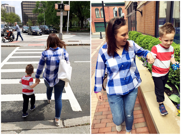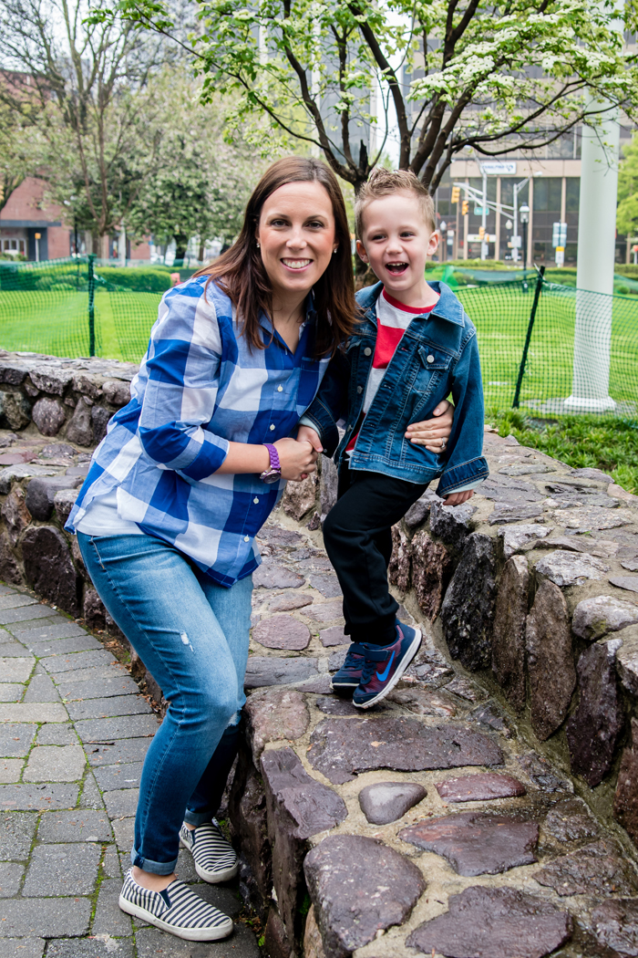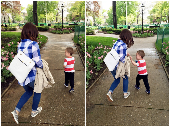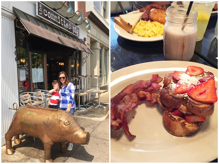 Considering how well Mother's Day morning went, it's funny to think that Chris and I were really worried about it just a few days before. The past 2 years (2015, 2014), we've gone to another restaurant in town. They have great outside seating and we just love the environment. But when the forecast was in the mid 50s with random rain showers, we knew we couldn't count on eating outside. The restaurant itself is just a normal deli, which wasn't what I had in mind for Mother's Day breakfast. Chris called around everywhere and could not get a reservation anywhere last minute. Then we remembered The Committed Pig and figured since they don't take reservations, we'd give it a try. There was a half hour wait, so we used the time to walk across the street to "green" so Chris could take some photos of me and Noah. A few bribes had to be offered, but we ended up with a few gems :) Then it was off to the most delicious breakfast... NUTELLA STUFFED FRENCH TOAST, need I say more!?! We were ready to go home after that, but the sun had finally come out and when given the option, Noah chose to walk around some more. It was so cute watching him smell all the flowers and telling us that they smelled like strawberries, bananas, and kiwi!