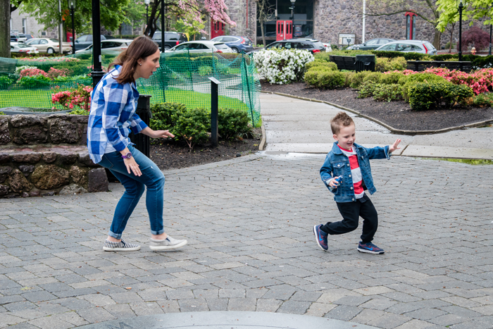 Taking photos with Noah in the town where he was born. It was amazing to take him back to our old town, walking around the "green" and the streets where we would take many walks. I used to love pushing him around in the stroller as a baby, going to the grocery store or just to get some fresh air. And today we were back, but instead of sitting in a stroller, he was holding my hand walking, smelling the flowers, and playing tag with me. Oh how time flies!