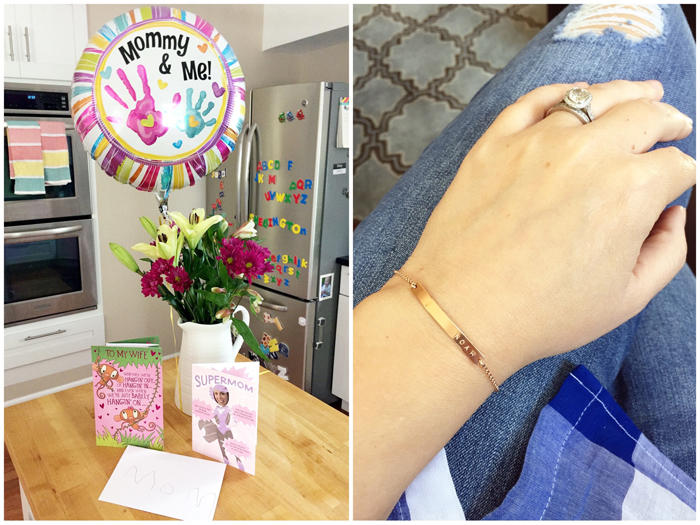 When we got home, I was spoiled with some more gifts. Flowers, cards, and a balloon. Chris and Noah also gave me the personalized bracelet that I hinted towards in this post. I am in love with this rose gold bracelet with Noah's name engraved in it.