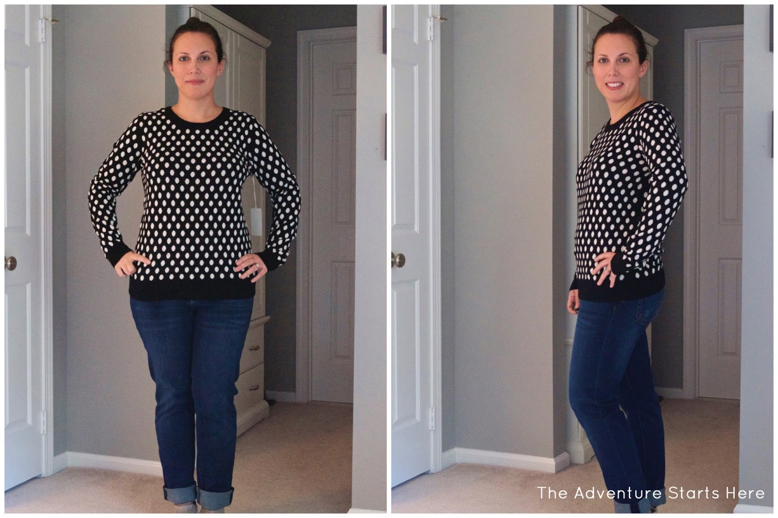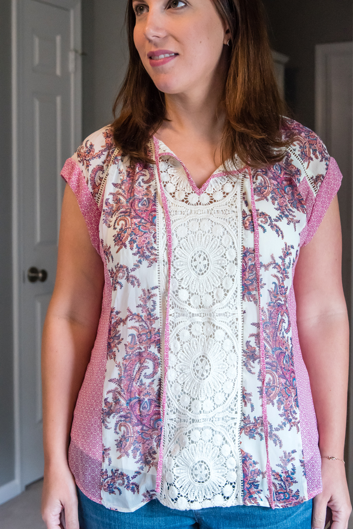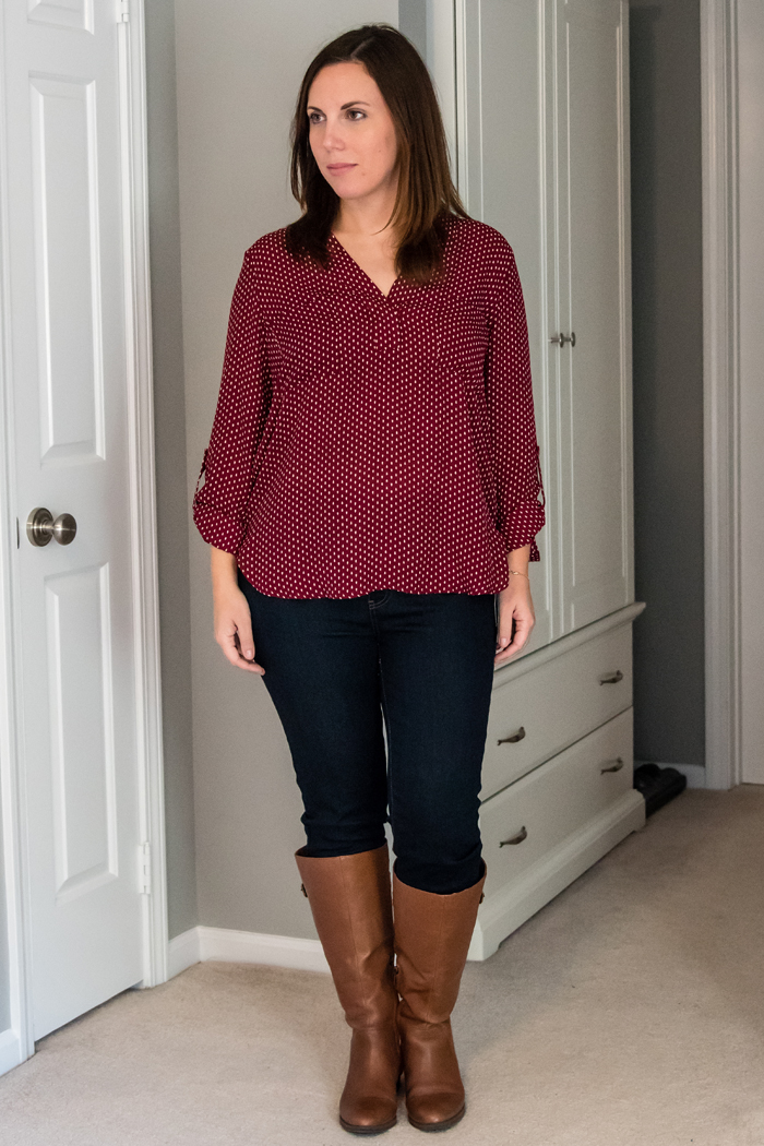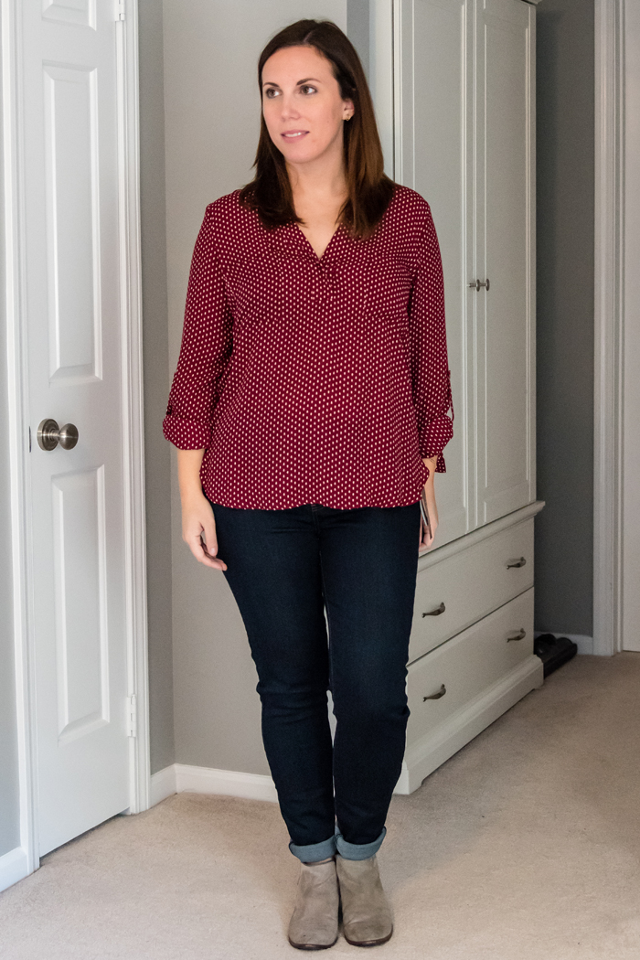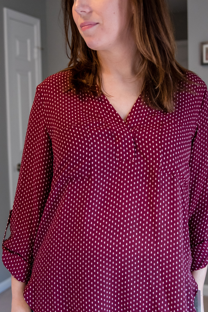 When opening the box, this Elby Split Neck Blouse was the first thing that caught my eye. I really loved the color and the polka dot detail. I wavered back and forth on this blouse a lot! In the end though, I decided to send it back simply because I can find similar tops at Loft for cheaper, since they are always having a sale!