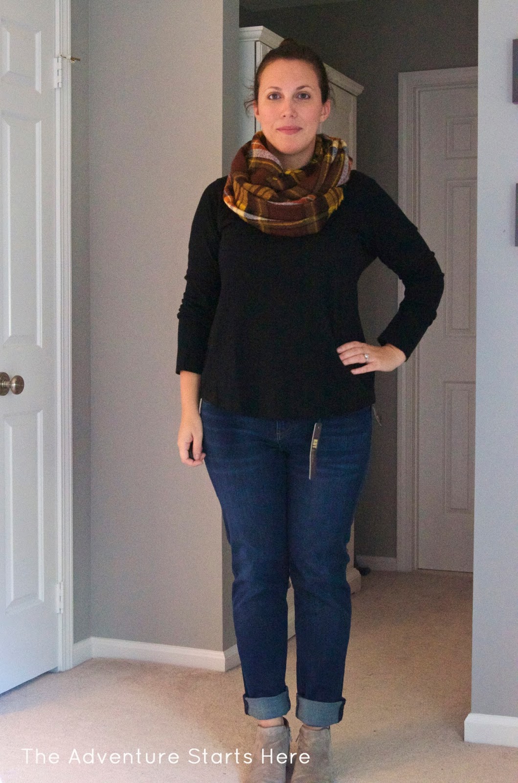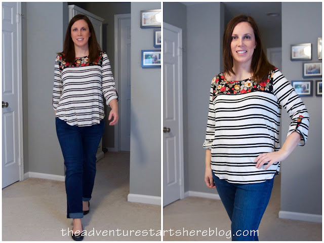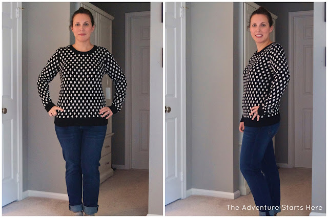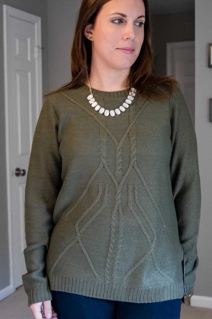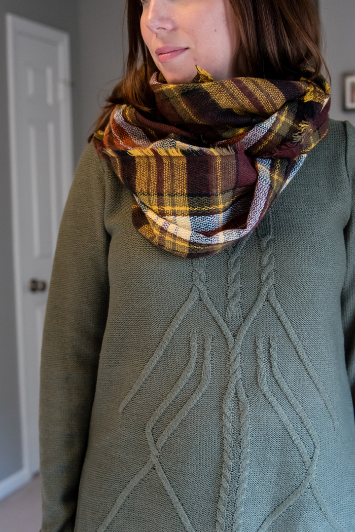 As soon as I tried on the sweater, I thought of the scarf Stitch Fix sent me last fall and thought they would look great together. I really like how they go together and think this would be perfect on a colder day!