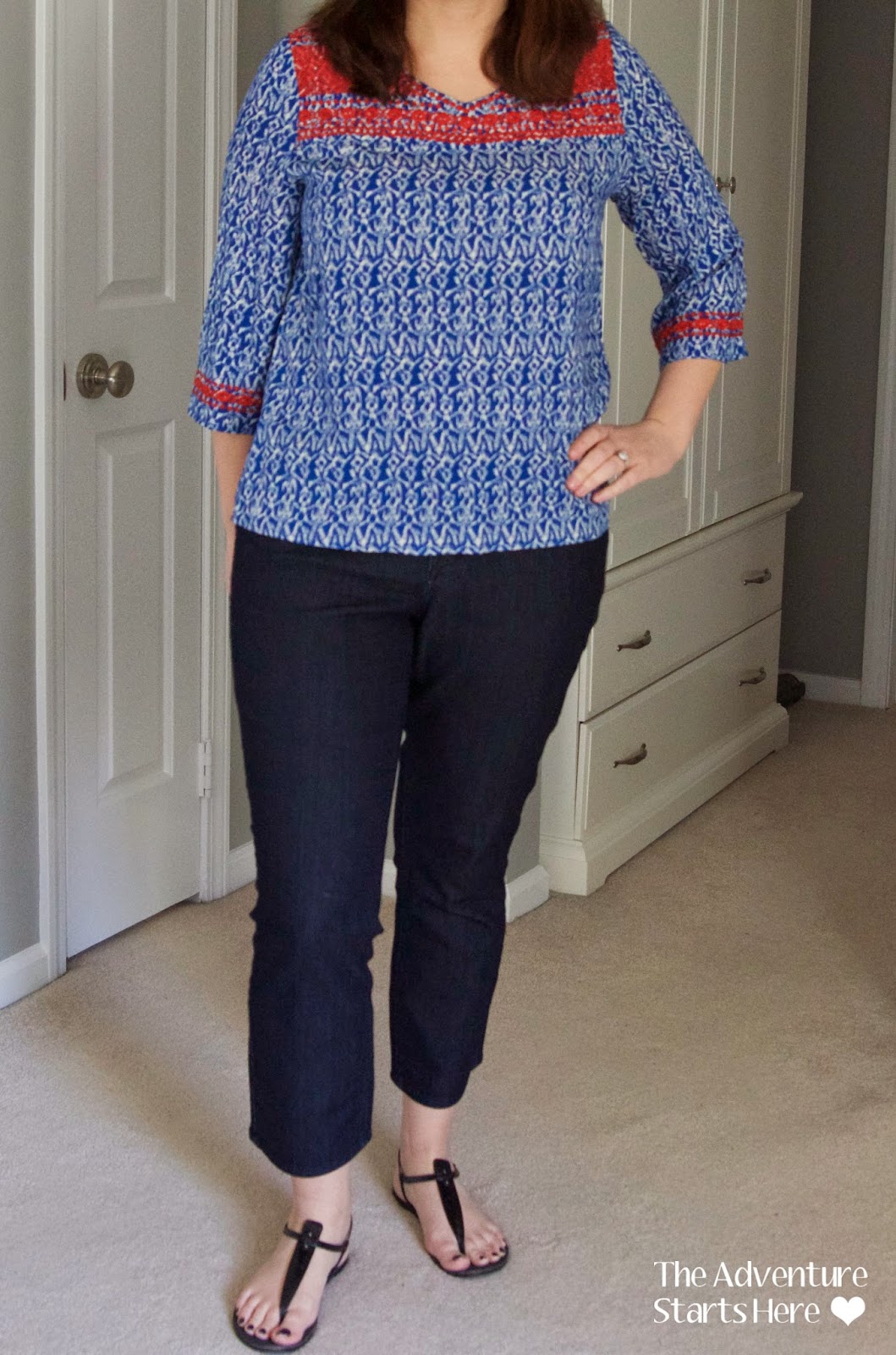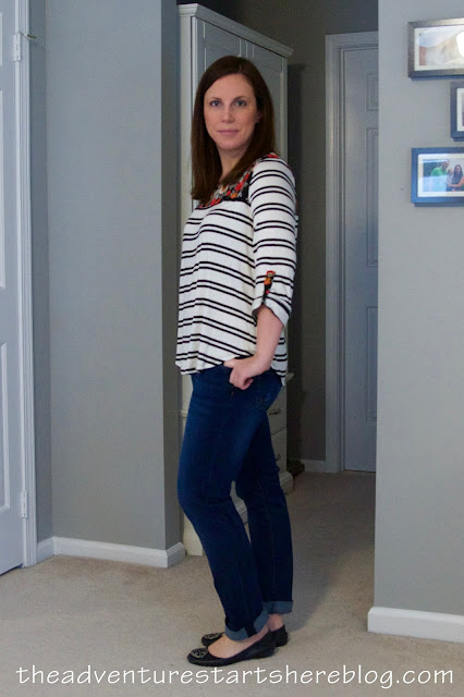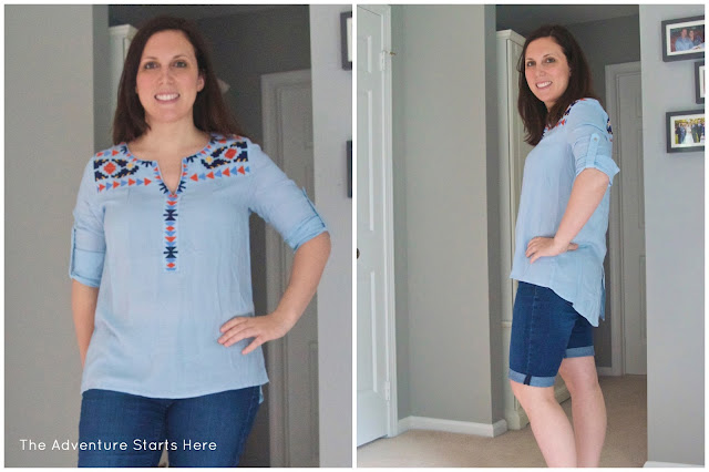 After liking everything so far, I was wondering if I might get my first 5 for 5. Unfortunately, I was disappointed with the Deron Beaded Trim Blouse. While it doesn't look bad, I don't think it's anything special. But the real deciding factor is that it was very see through, meaning I had to wear a tank underneath. And at the price, I really did think it was justified. Part of me wishes I could find a white blouse to add to my closet, but it is nearly impossible to find one that isn't sheer!
