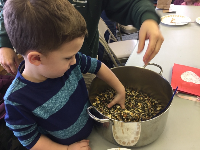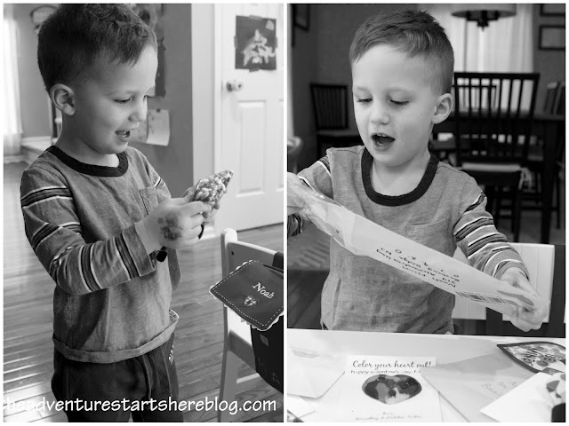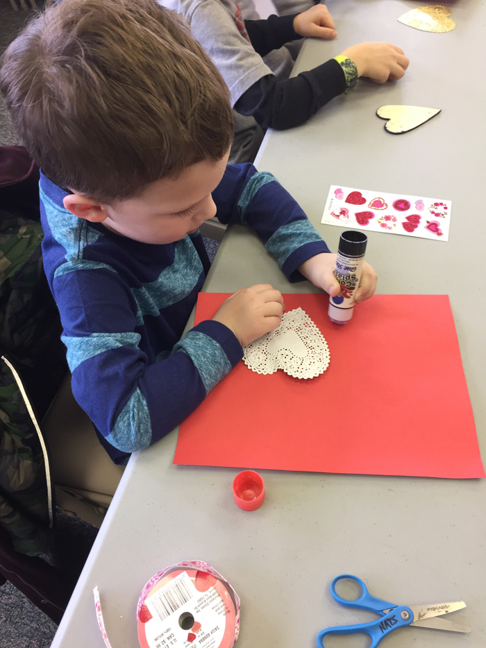 We then quickly got ready and headed out the door to meet up with some friends. I was a little bummed he wouldn't wear his Valentine's shirt, but he did promise me he'd wear it to school the next day for their Valentine party. We went to our local environmental center where the kids learned about birds, and then made a Valentine craft AND a bird feeder. It was so sweet when Noah decided that his craft was going to be for Daddy when he got home that night! We then went to lunch with his friends before heading home to just hang out. It really was a great way to spend Valentine's Day!
