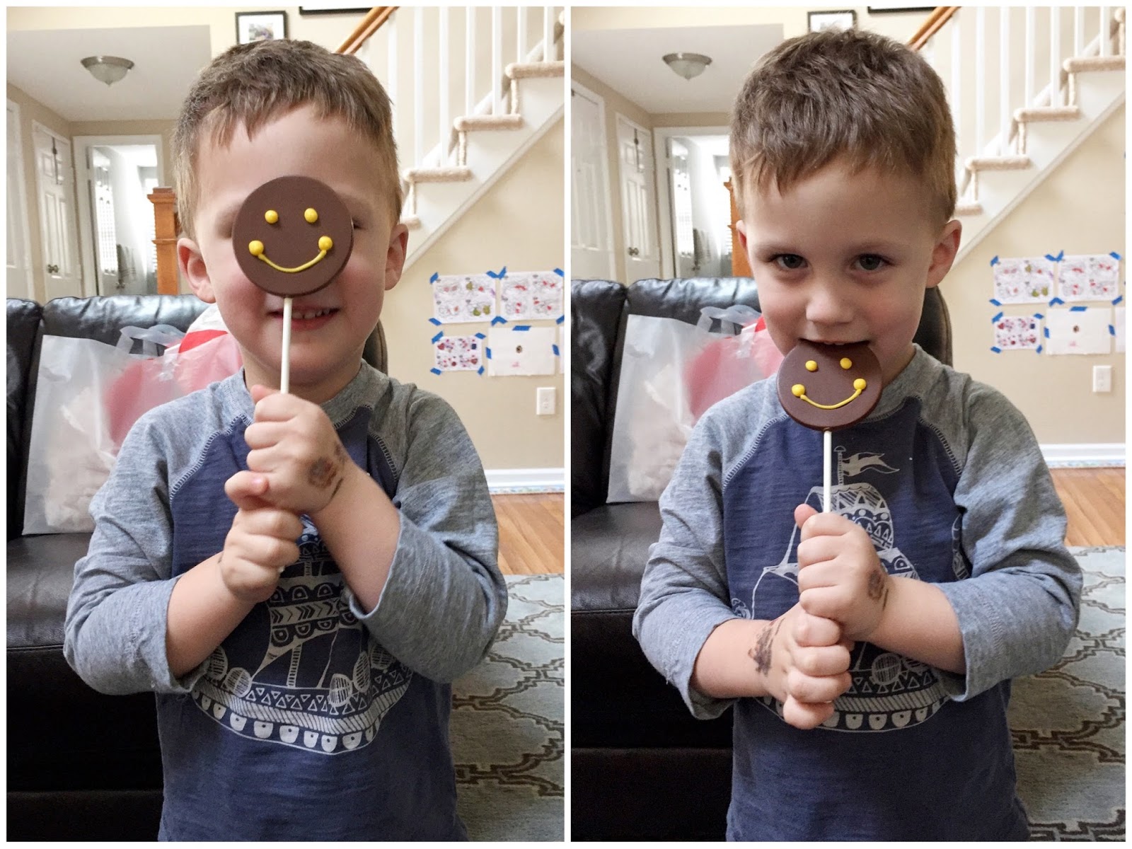Grandma and Papa gave him Guess Who, a Batman Lego set, a few books, and even more candy. I think it's safe to say that Noah was basically surviving on an all sugar diet at this point! After reading Wacky Wednesday, playing multiple rounds of Guess Who, and building his Batman Lego, it was time for dinner. Noah wanted to eat at home, so my mom went out and picked up Chipotle for us, getting an extra bowl for Chris for when he finally got home from work. I was so relieved to see the sugar didn't affect Noah's appetite and he inhaled his quesadilla, rice, and cantaloupe!