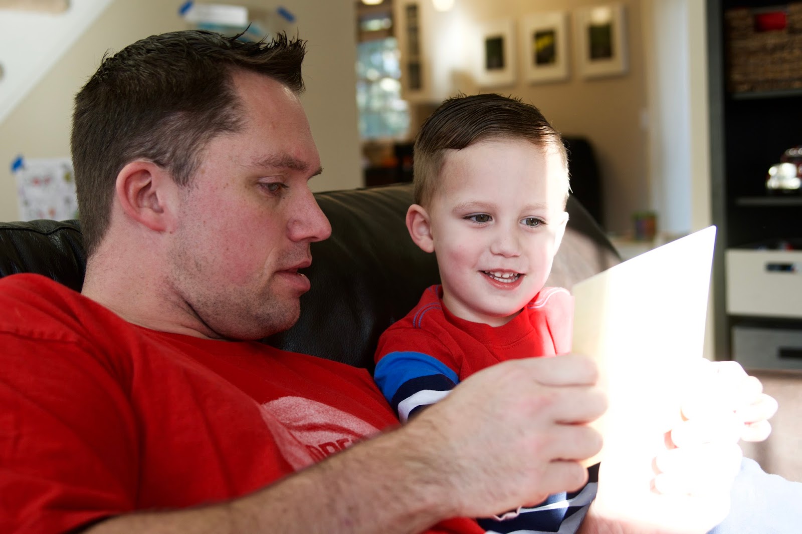 Grandma went home, and we were lucky enough to have Chris home on time (which still isn't until 6:45). Noah helped us exchange cards and open our gifts. We were cracking up to find out that we both used the same photo in our personalized cards! Chris took my hints and got me a few things I mentioned in this post. I was a happy girl :). As for Chris, I got him some beer a little 6 pack cooler we can use when we go to BYO restaurants. I had put the beer in our basement fridge a few days ago, knowing there was a good chance of him seeing it. He kept quiet but admitted that he had already seen it. I got him Sam Adams Cherry Wheat and he was convinced that I bought it after asking his friend what his favorite beer was. We don't really drink much at home and I really know nothing about beer. When we are out, I usually see him order a Miller Lite, or prefers to try something new that they have on tap. But since this was a gift, I wanted to get something a little nicer than Miller Lite. So I went to our local liquor store and just started looking at all the different beers. I ended up with the Cherry Wheat because I remembered he liked the seasonal Sam Adams and he's always down for trying the fruity flavors. Chris was shocked that I just happened to pick out his favorite beer without any help. We couldn't get over how random and fortuitous my beer selection was!