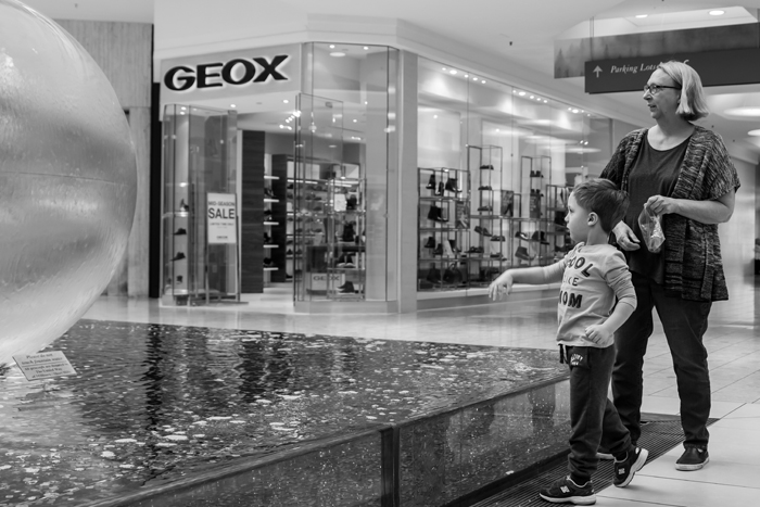 11am... After getting Noah dressed, we head out to meet my mom at the mall. Noah fell asleep on the way there, but he happily woke up when we get there. Before meeting my mom, we headed over to Crate and Barrel to replace a dinner plate I recently dropped on the floor. Then we met my mom at the fountain to let Noah throw in countless pennies. For about 50 cents to a dollar, Noah is happy as a clam. Let's just say that this is much cheaper than rewarding him with a toy when we go to Target!