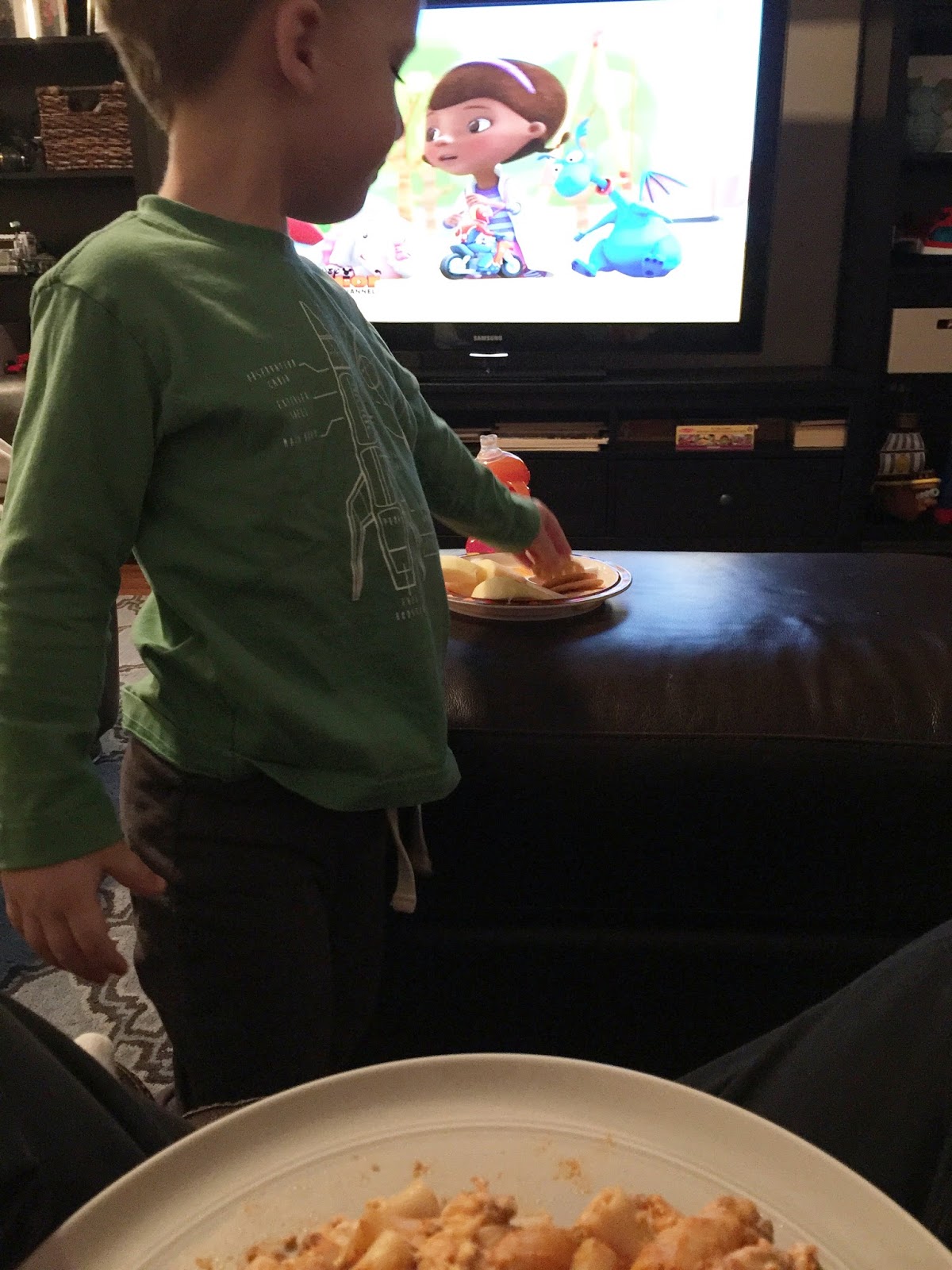 5:45... I made pasta for dinner. I had it with meat sauce while Noah ate it plain. I put the leftovers away so Chris could have some when he got home.