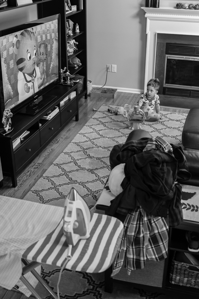 9 am... Noah is pretty good at playing while watching TV, so I really don't mind having it on in the background. And Daniel Tiger is always good in my book. Since Noah is entertained, I take the opportunity to iron Chris' shirts for the week.
