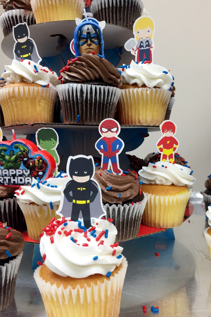 Chris then picked Noah up from school and took him to pick out some flowers and cupcakes for my birthday. Noah usually gravitates toward the artificially neon colored flowers, so I was pleasantly surprised to see that Chris was able to lead him to these pretty tulips this year ;) The cupcakes he picked out were a big surprise, and I had to wait until after dinner to find out what they were!
