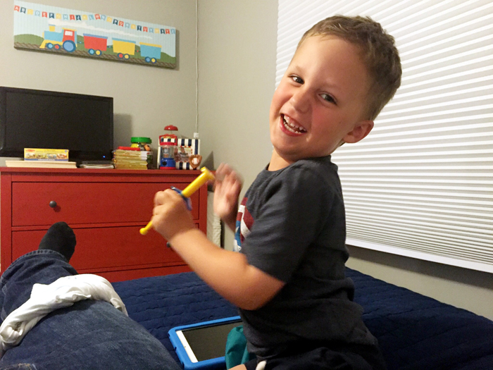 Shoes that are too small! This kid seemed to grow over night. Everyone we run into comments about his height change, and I'm not surprised at all since he was complaining about growing pains. Well I guess his feet grew too, because all of a sudden he was taking his shoes off in the car and complaining that his feet hurt. And of course physical shoe stores for kids are rare these days and it doesn't help that Noah has extra wide feet, wears a size 12 now, but still needs velcro! It took us two orders, but we finally found some new shoes that fit him... thank goodness!