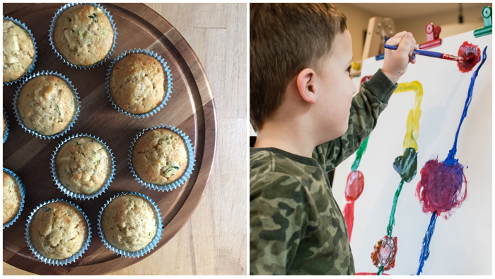 We've been making a new baked good each week. This month we made banana bread, chocolate chip muffins, oatmeal cookies, and just this last week we made our apple zucchini muffins. And I'm loving this cake stand that Chris got me for Valentine's Day!