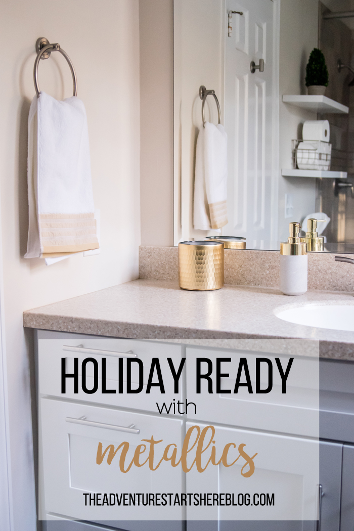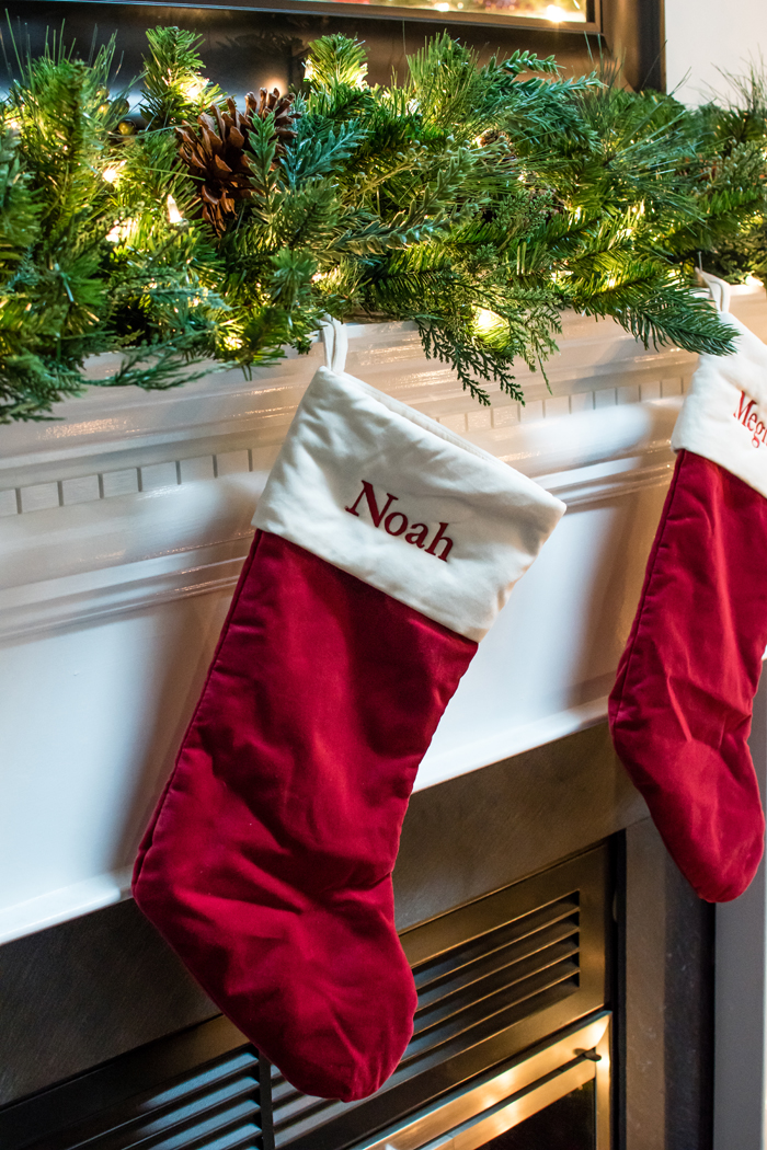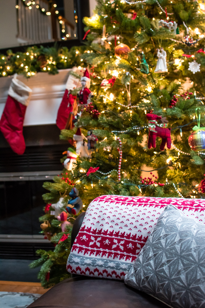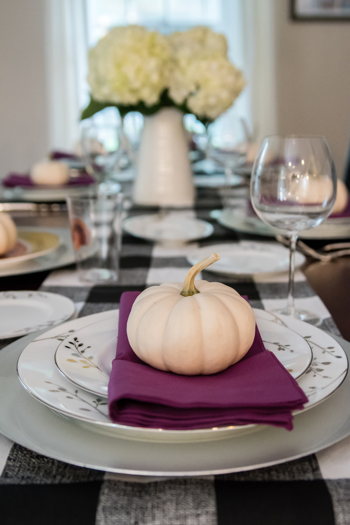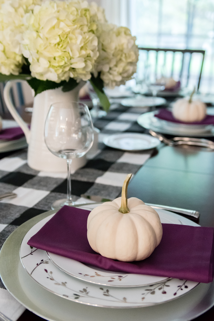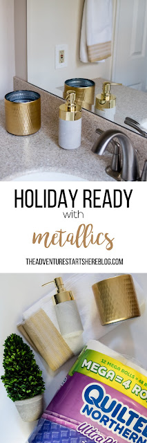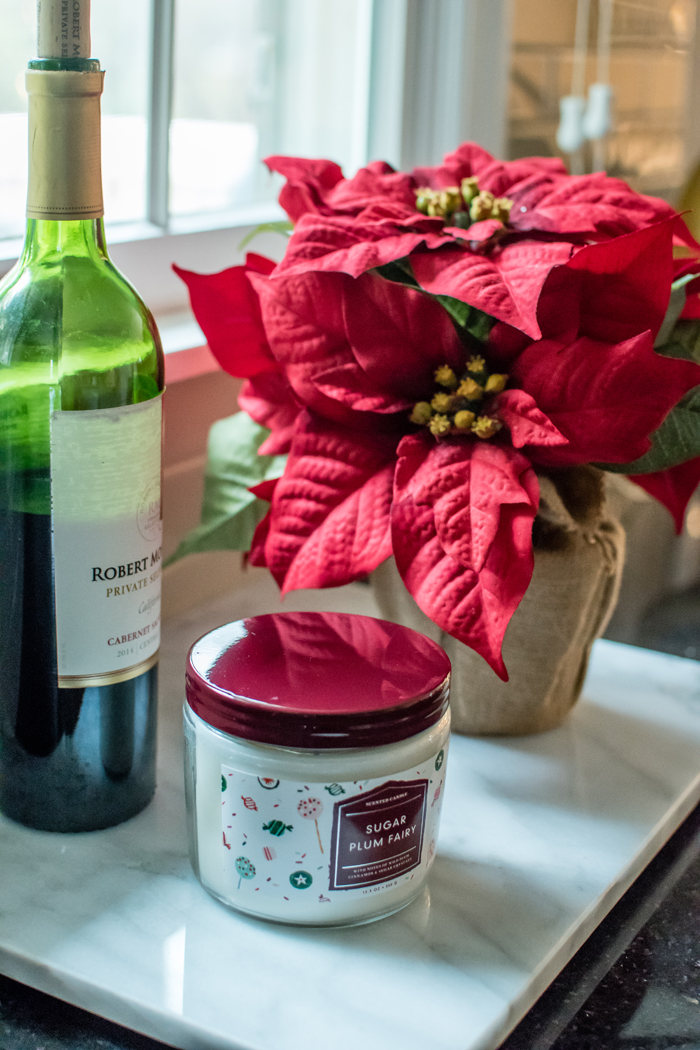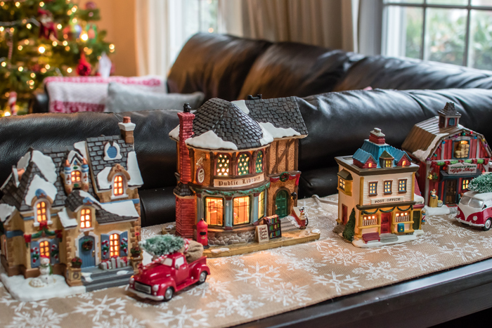 As for our dining room, I kept with my favorite decorating formula. Since we use our table for much more than dining (think game boards, puzzles, and Lego making), I prefer not to "set the table". Instead, I cover the table with a seasonally appropriate runner and add my new favorite gold tray filled with pretty decorative accessories as well as the necessities, like a box of tissues (cause Noah always seems to have a runny nose when we are in the middle of a game!).