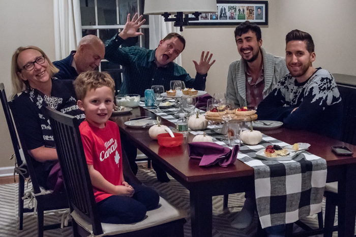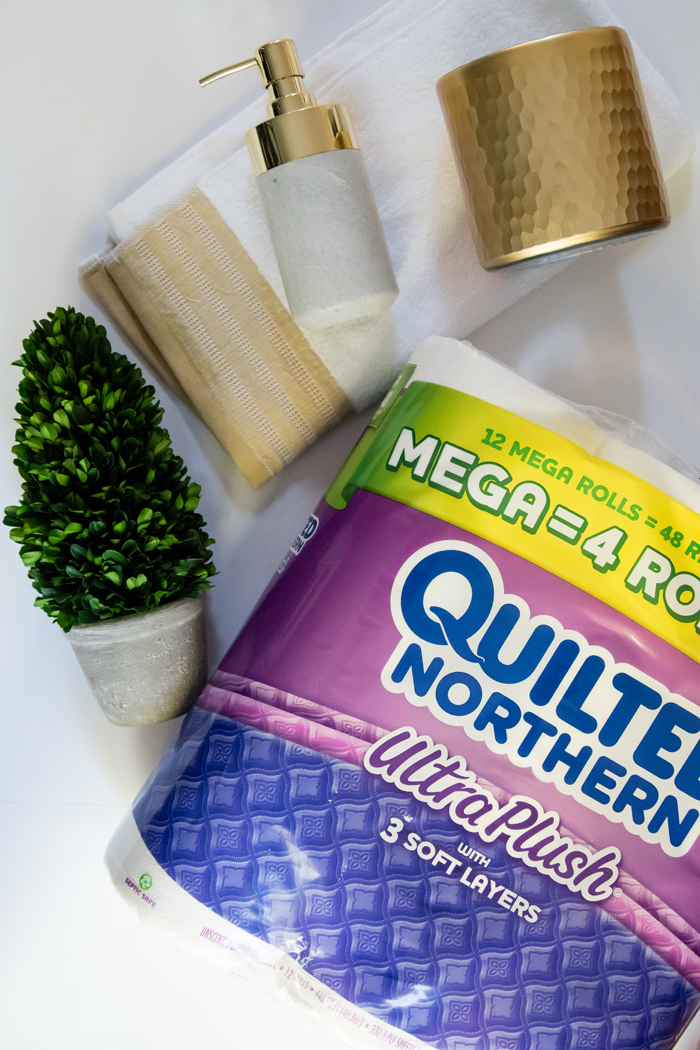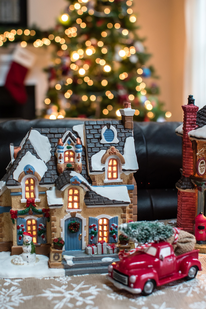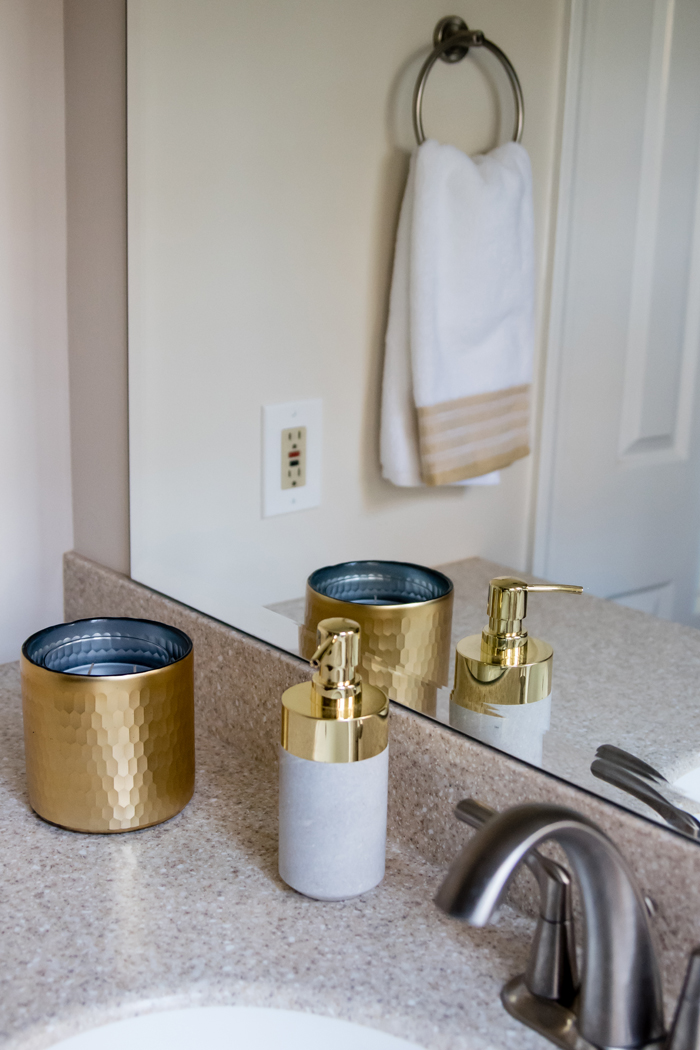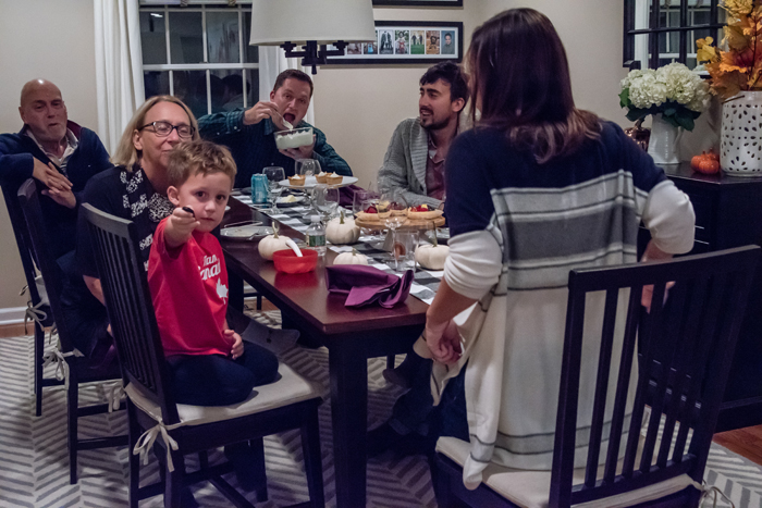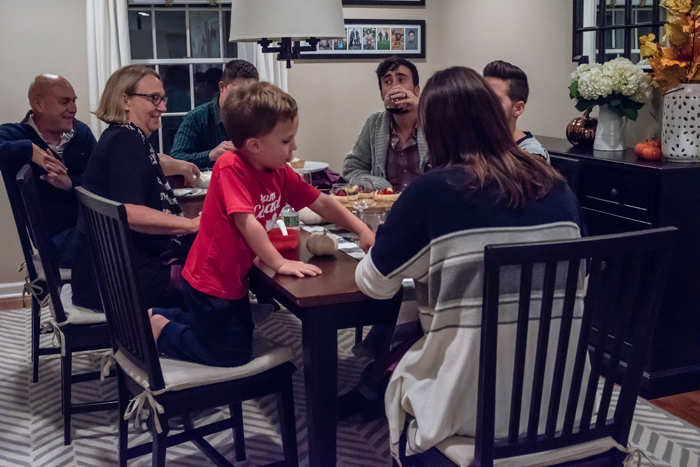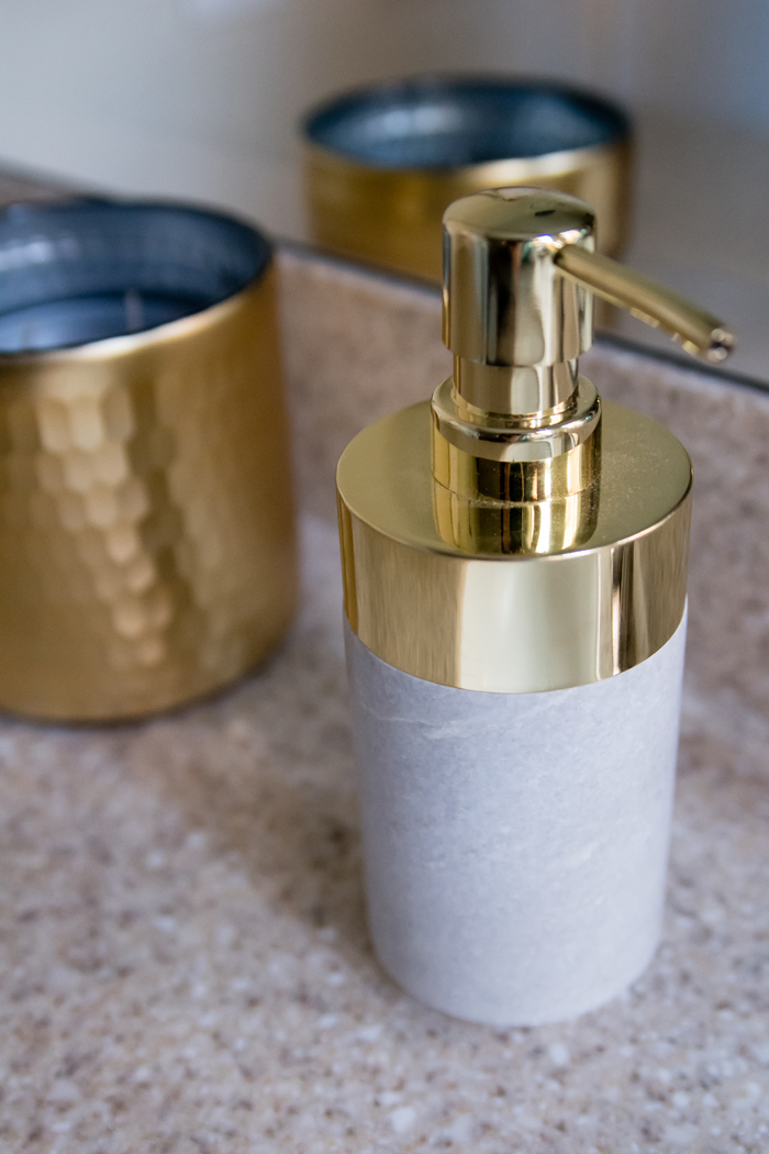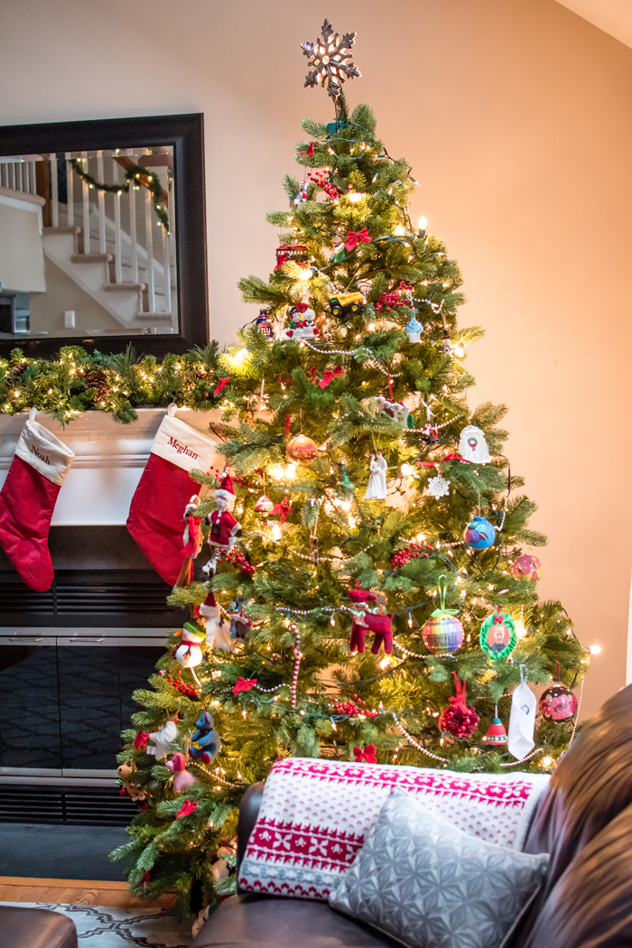 As for our dining room, I kept with my favorite decorating formula. Since we use our table for much more than dining (think game boards, puzzles, and Lego making), I prefer not to "set the table". Instead, I cover the table with a seasonally appropriate runner and add my new favorite gold tray filled with pretty decorative accessories as well as the necessities, like a box of tissues (cause Noah always seems to have a runny nose when we are in the middle of a game!).