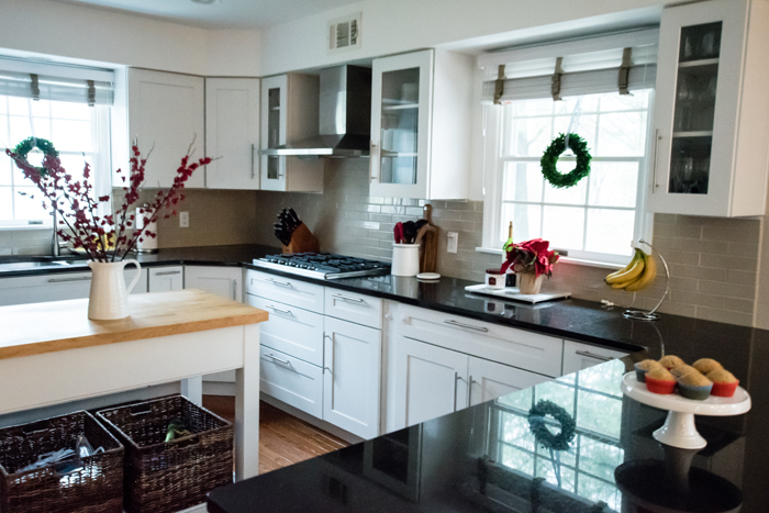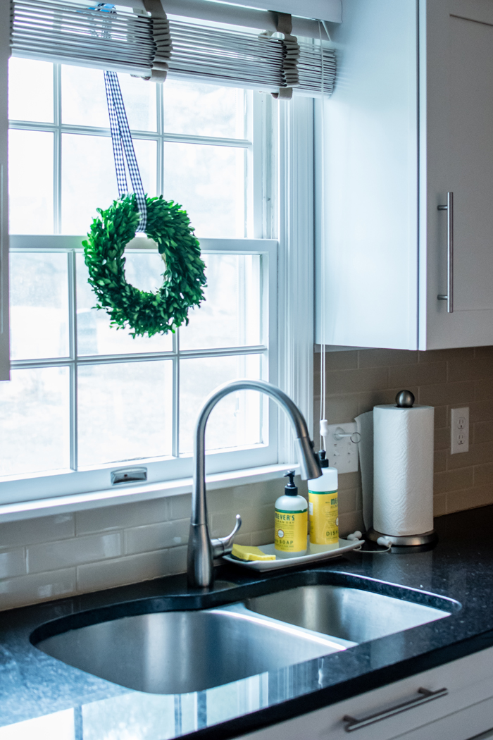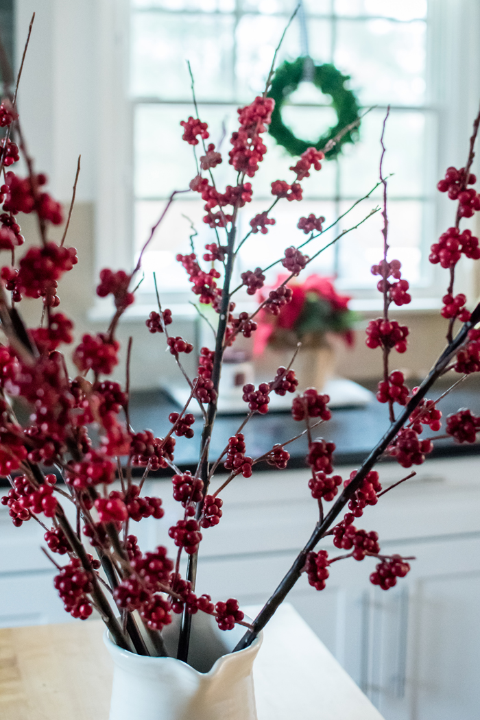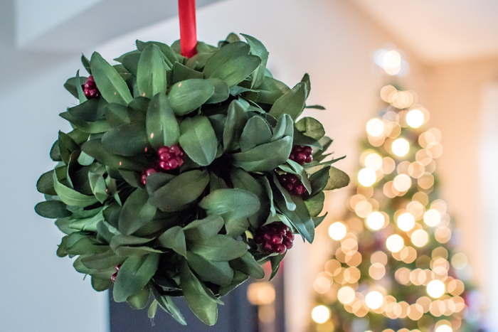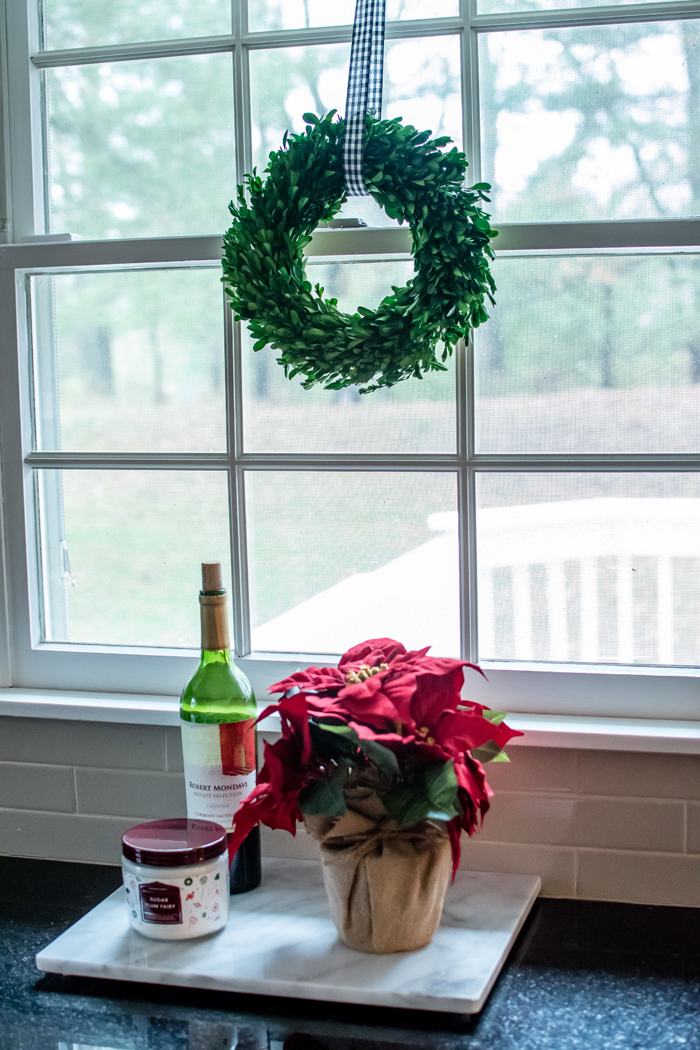 Another piece of decor that I bought last year is this pink wreath. I knew it had faded when I was putting it away last year, but I didn't realize how much until I compared these photos side by side. While I love the amount of sunlight our house gets (especially for indoor photography reasons), I have a real problem with fading wreaths. My boxwood wreath looks so horrible after one year that I am embarrassed to use it again. While I love how vibrant this pink wreath was when I bought it, at least this one looks like it could have been light pink all along. I wonder what it will look like by next year!?!