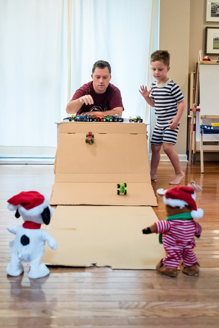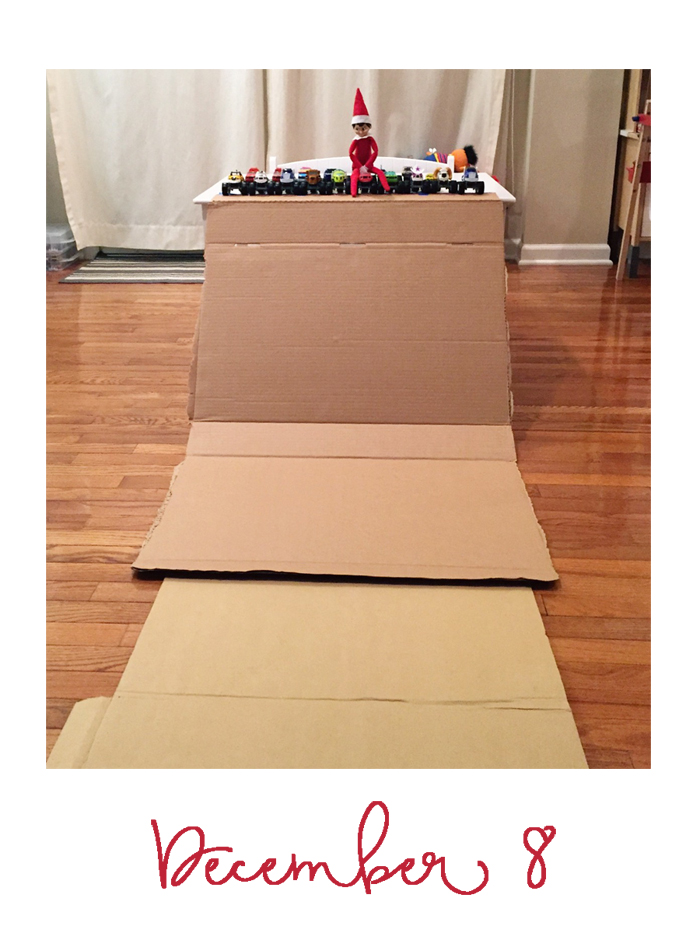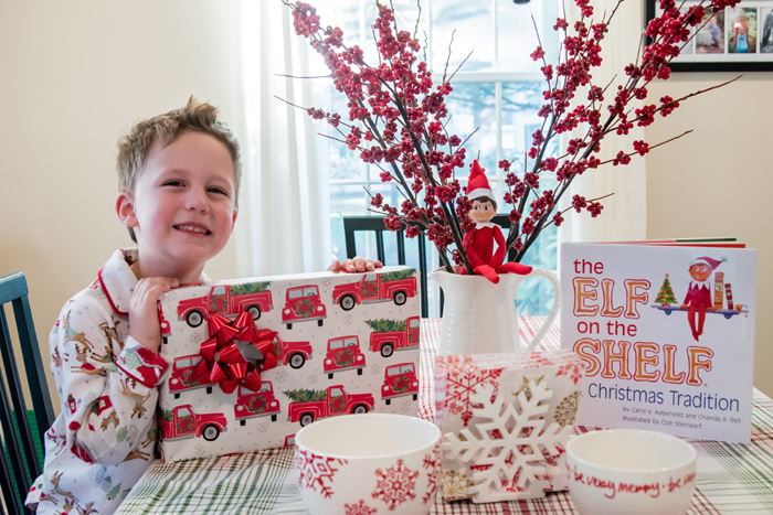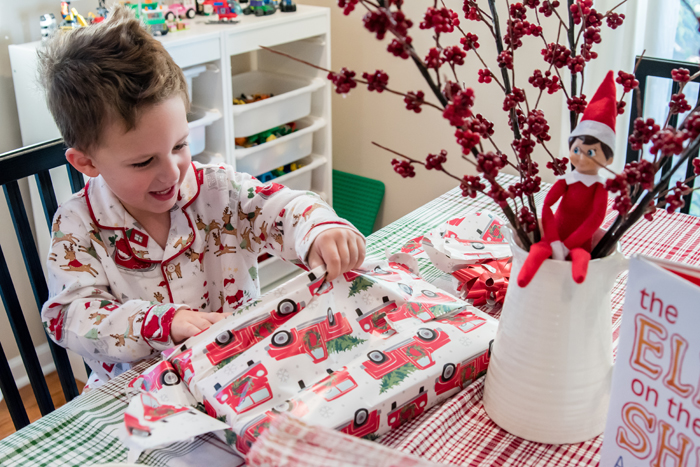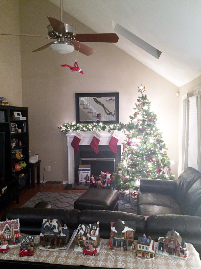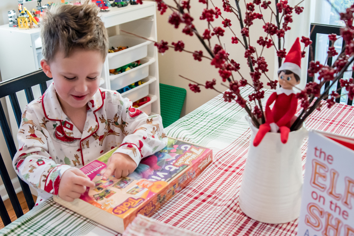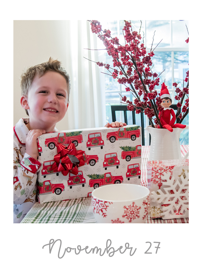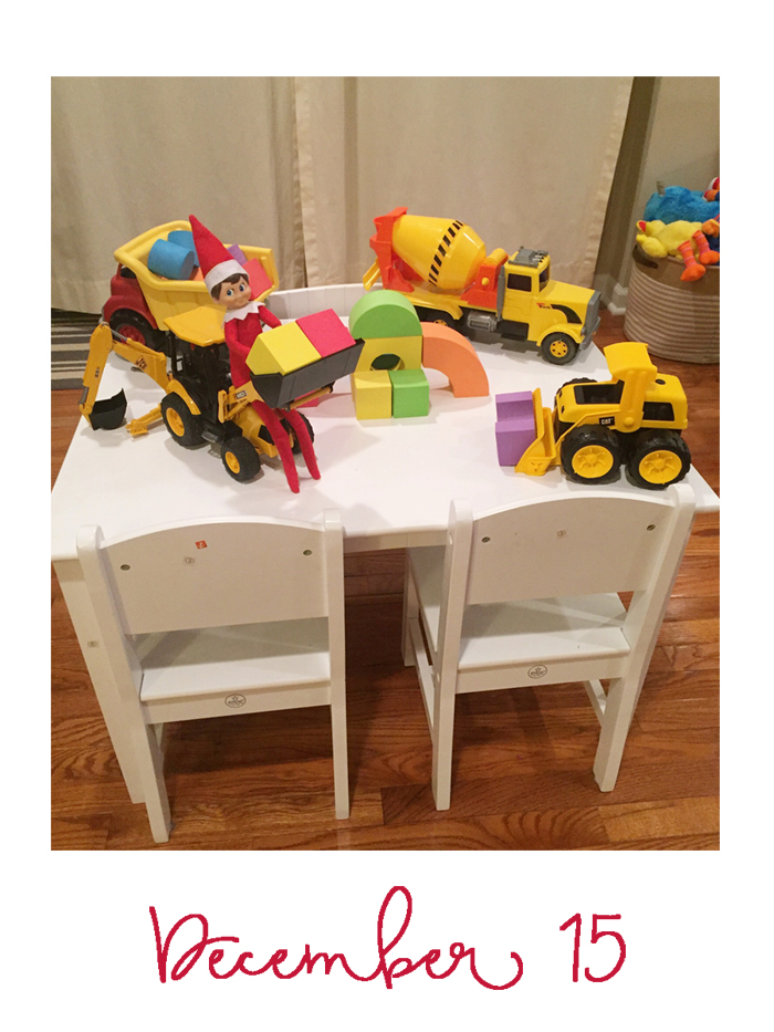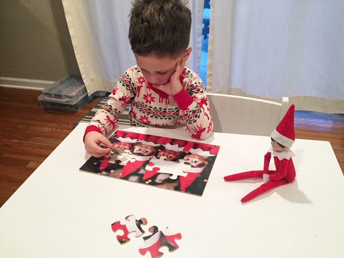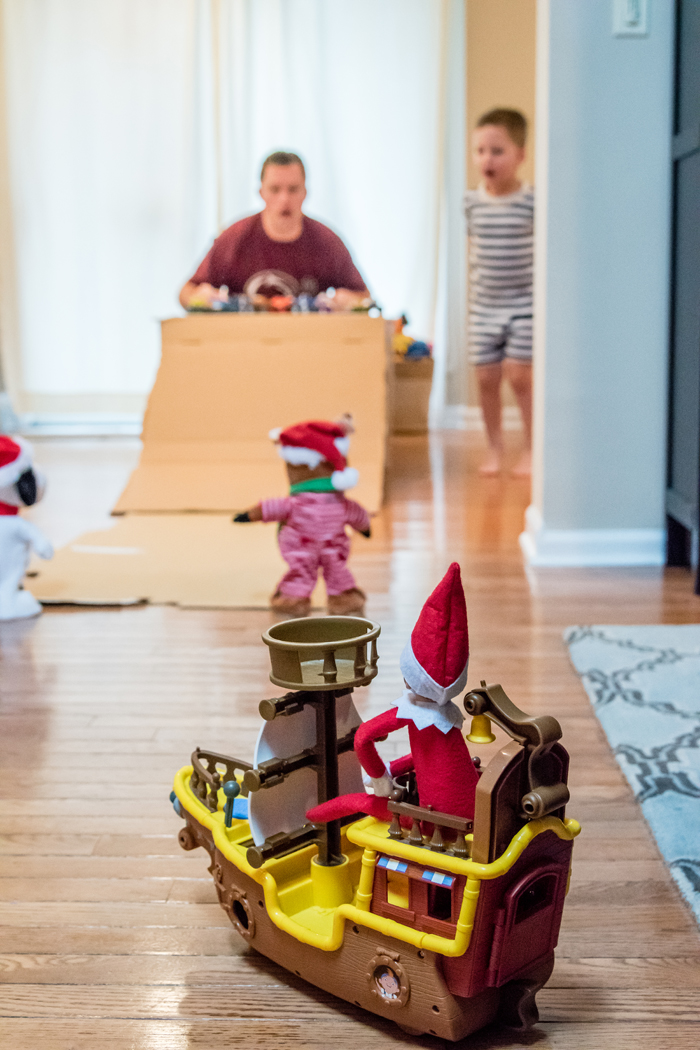 Last year was the first year we did the whole "elf on the shelf" thing. We decided to wait until Noah was old enough to really appreciate it. While our elf doesn't cause problems or make messes, he does move around each night and get himself into some pretty funny situations. And while I would love to take credit for Buddy's creative shenanigans, I can't... it's all thanks to Chris. As soon as we started talking about starting the elf on the shelf tradition, he was vocal that he wanted to have creative control. He comes up with all the ideas, executes them, and then sends me nightly photos of what Buddy is up to. Every morning, I record Noah looking for Buddy. Even though Chris can't be there every morning, he at least gets to see his reaction (which is usually pretty funny) on video... and I get to have a month's worth of videos for documentation purposes!