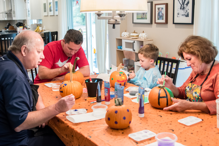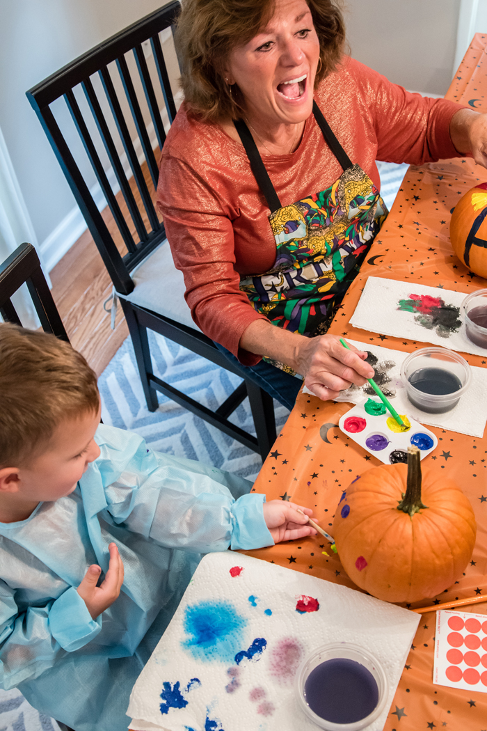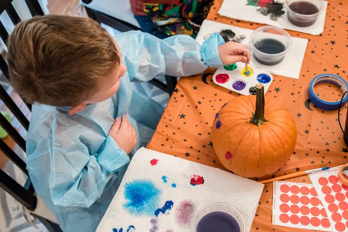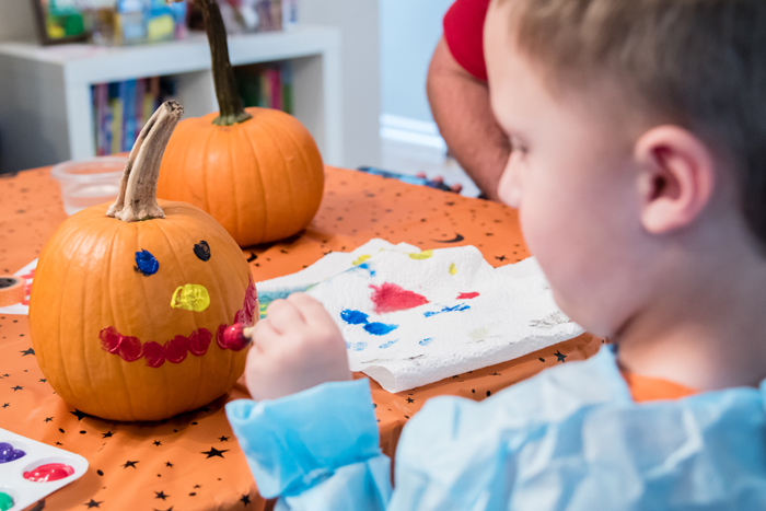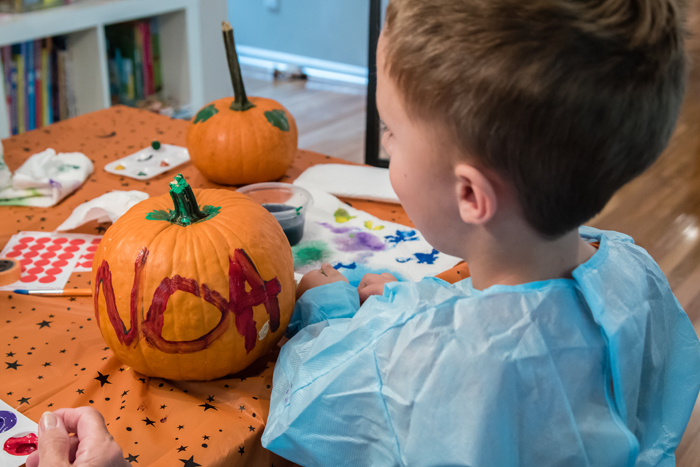 This is a good rule of thumb whenever kids are involved, but especially when doing an activity that can easily get messy. For our "party", it was just Noah some of our family friends. While Noah and his friend were able to decorate their houses with very minimal help from us, our 2 1/2 year old friend needed more help from her mom. It's a good idea that you have enough adults to assist when necessary.