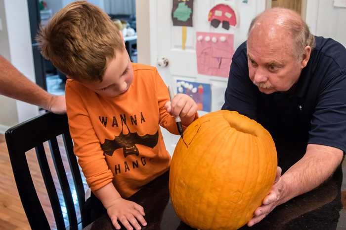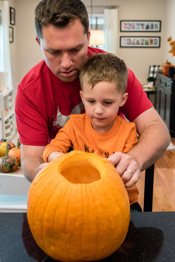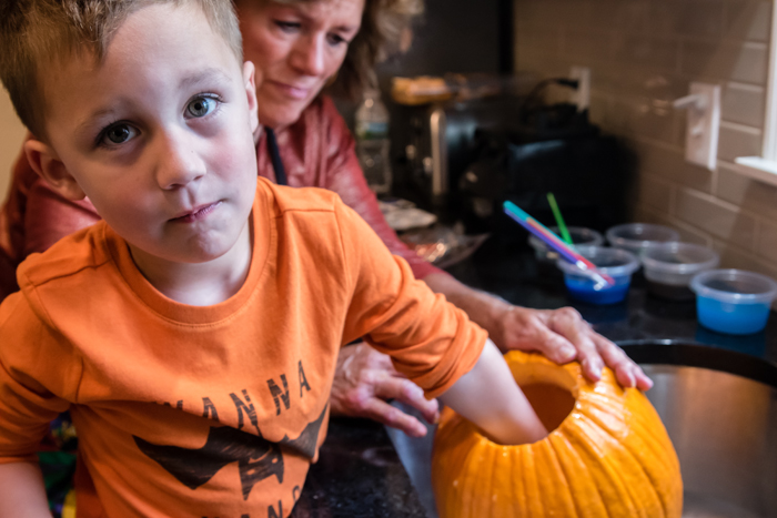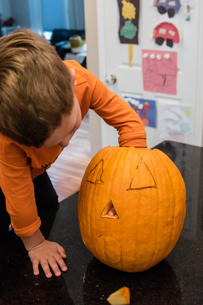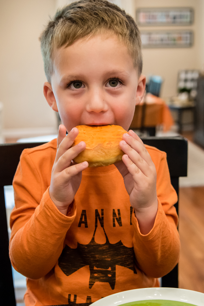 Last year, I wasn't expecting the candy included to be good, and ended up buying a ton of extra candy. I quickly learned that the candy in the kit is really good. This year, I stuck with their candy and instead just picked up some little condiment to go containers to neatly organize each kid's candy. While not at all necessary, Noah did decide he wanted to add a few extra decorations like mini marshmallow, pretzels, Fruit Loops, and white chocolate chips... all things I had on hand in my pantry.