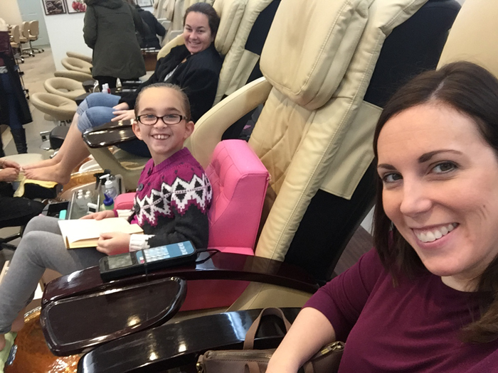 After a long day in NYC, we welcomed a more relaxing day. Noah played with Chris at home, while I met my sister-in-law and niece at the nail salon. We each got a manicure and pedicure, and I love that my 9 year old niece picked a bright magenta and bright blue for her nails... ahh to be young again! We then met up with everyone for pizza and ice cream. Later that night, we met up again for an early birthday dinner (my sister-in-law and Chris have the same EXACT birthday, same day AND year!). We met at Outback and then headed back to my parents' house for ice cream cake and singing. My mom even got little cupcakes so each of the grandkids got to blow out their own candles :)