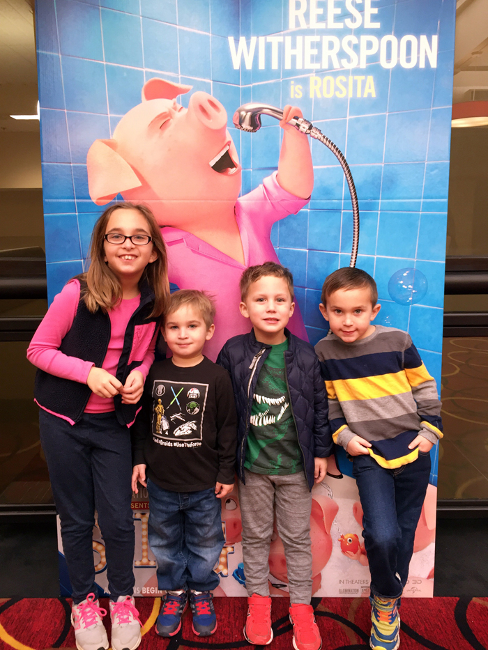 We met up with my parents and my brother's family for a morning movie. We've been excited to see SING! for a while now and we've been having fun collecting the Happy Meal toys at McDonalds. The movie was really cute, though Noah didn't last past the previews sitting with his cousins. A preview with a "monster" came on and he freaked out and wanted to sit with me and Chris for the rest of the movie. SING was really cute and not scary at all, but I still got lots of snuggles when Noah wanted to sit on my lap halfway through.