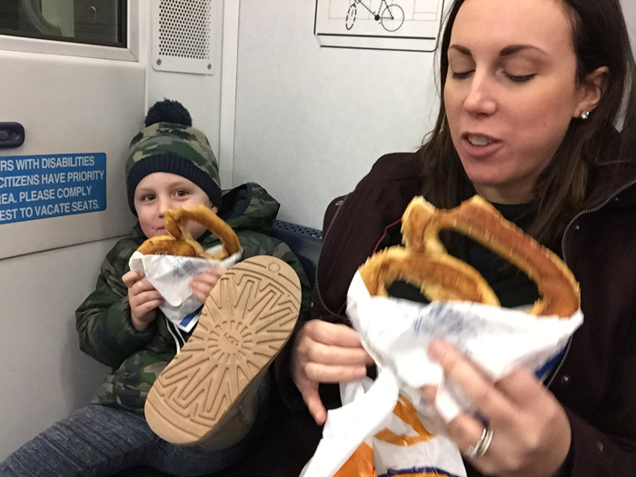 ^^^ we bought some pretzels before getting on the train home. Noah loved the pretzel, but was over taking photos!
