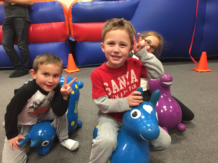 After spending Christmas weekend with both sides of the family, we thought it would be fun for Noah to run around and get some energy out. Noah's youngest cousin (who's just a week older than him) wasn't feeling well, so we met his two older cousins at our local bounce place. Usually Noah is begging me or Chris to go in the bounce houses with him, but this trip he was happy to just follow his cousins around! We ended up splitting up in the afternoon. Some friends from college were coming by for a visit, Noah got to play with his many new toys, and the older cousins went to see the new Star Wars movie!