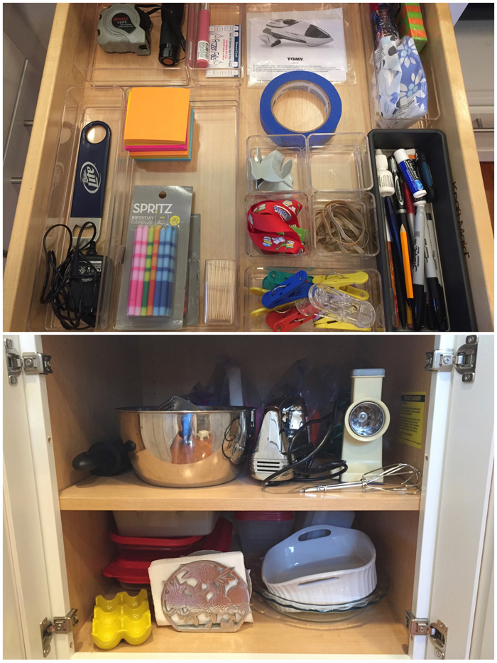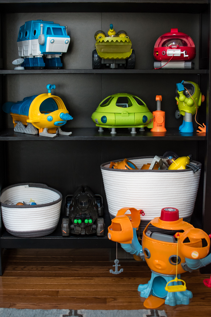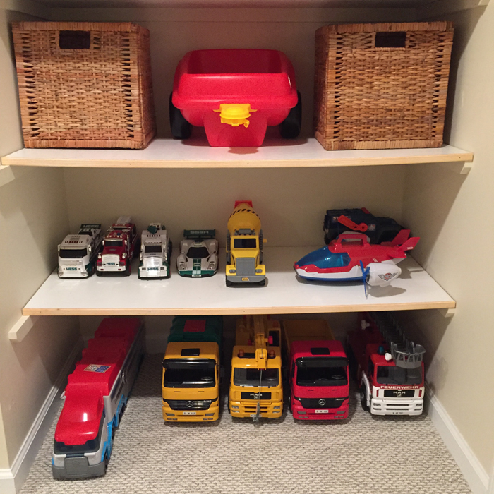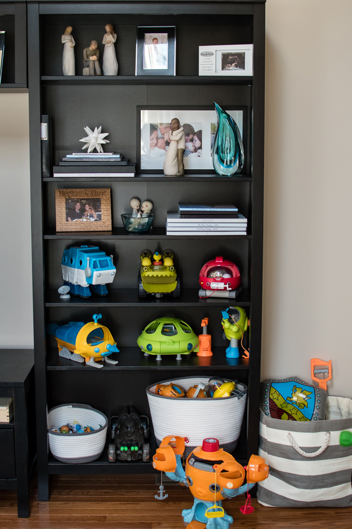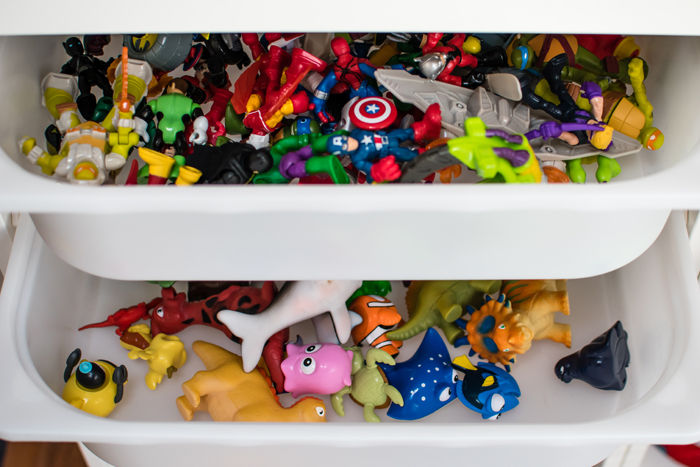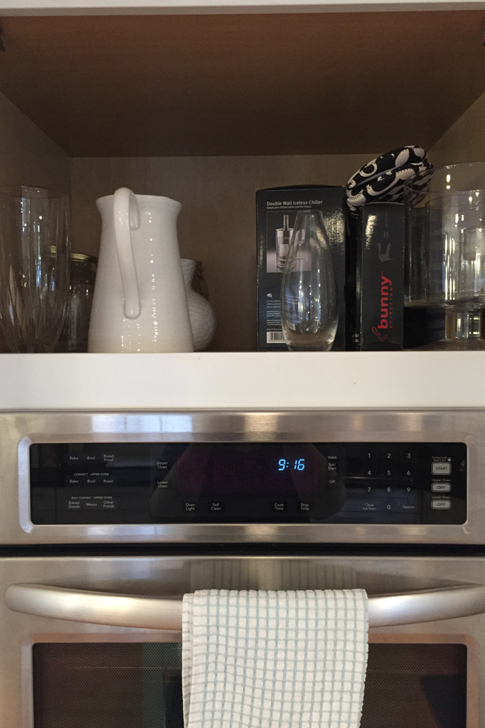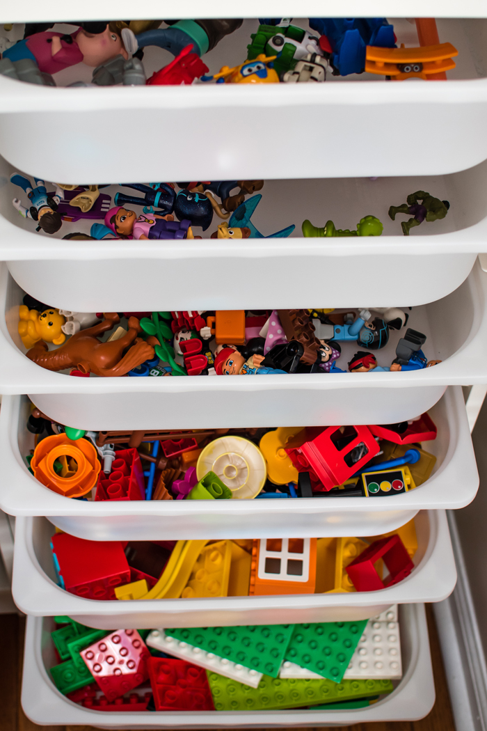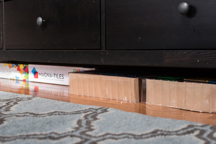 In addition to extra cleaning supplies, I also keep Noah's swim bag in the linen closet. I find it easy to just empty Noah's wet towels and swim suit into the washing machine, and then refill the bag as soon as everything has dried. It's so much easier knowing I'm prepared for the next week's class.