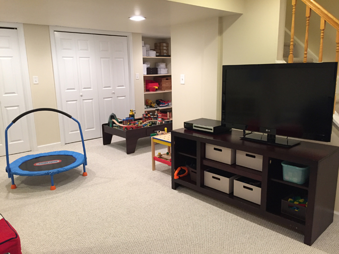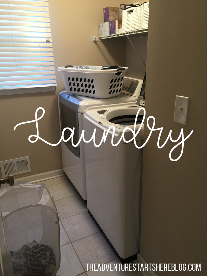 When we were looking at houses, I was very torn with whether I wanted the laundry room on the first or second floor. I knew I didn't want one in the basement (two sets of stairs didn't sound fun), but other than that I didn't have a clear preference. While having it on the same floor as our bedrooms sounds convenient, I didn't love the idea of the loud washer and dryer waking Noah if he was sleeping. And I kind of like being able to switch loads throughout the day while Noah is playing without having to go up and down the stairs. In the end, the house we ended up buying had a laundry room on the first floor, and so far I really like it. It's not huge by any means, but it's much better than the "closet" we had in our apartment. In theory, I love the idea of front loaders which then give you a work space above to fold. But in reality, I didn't love our front load washer in the apartment. It was constantly getting mold in the rubber front and I never found a way to fully clean it. So while I miss the extra work and storage space, I was very relieved to have a top load washer again.