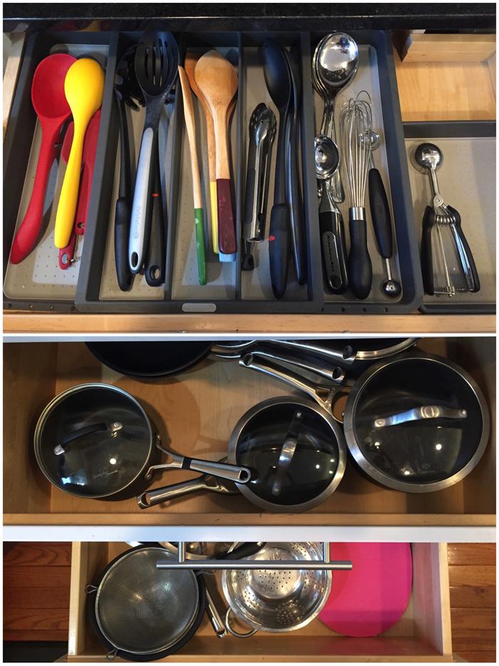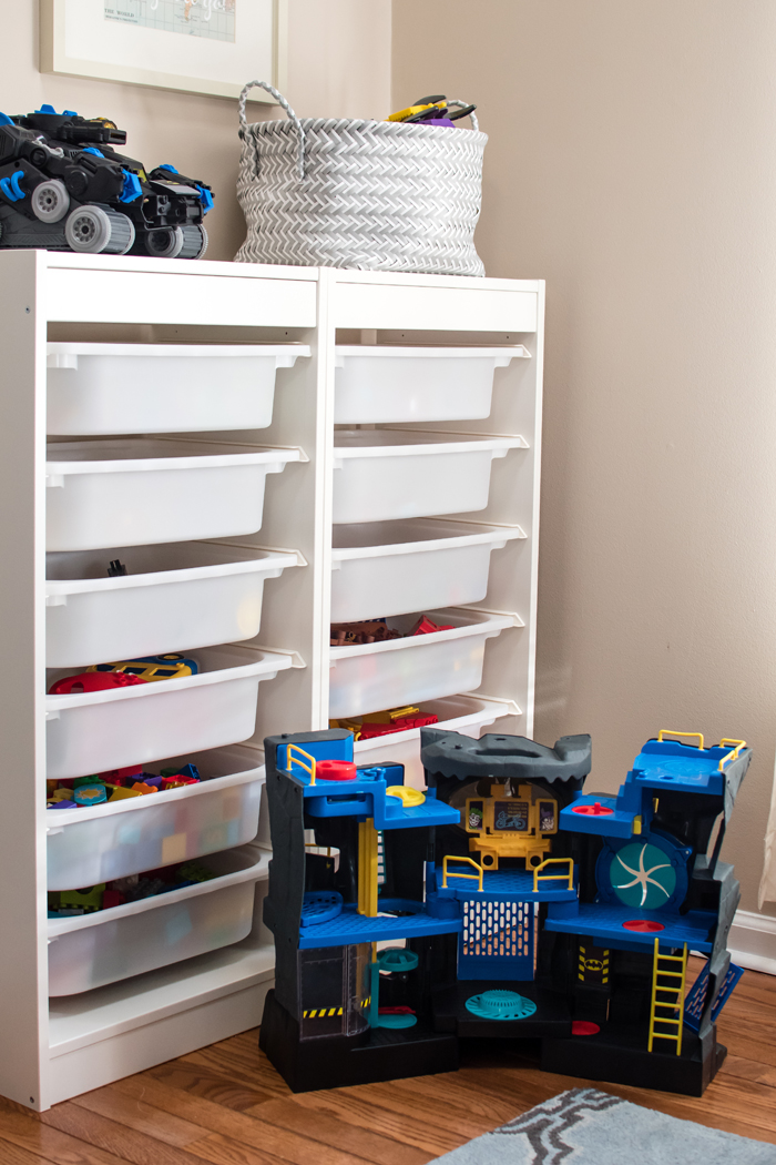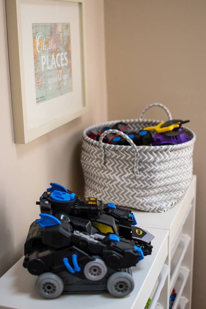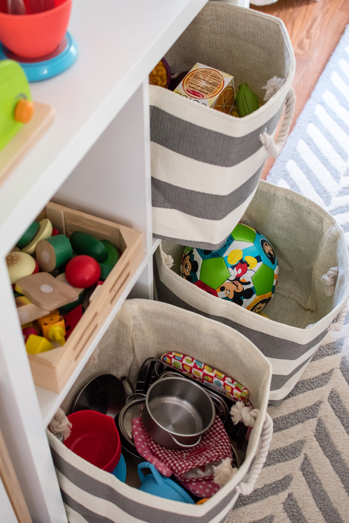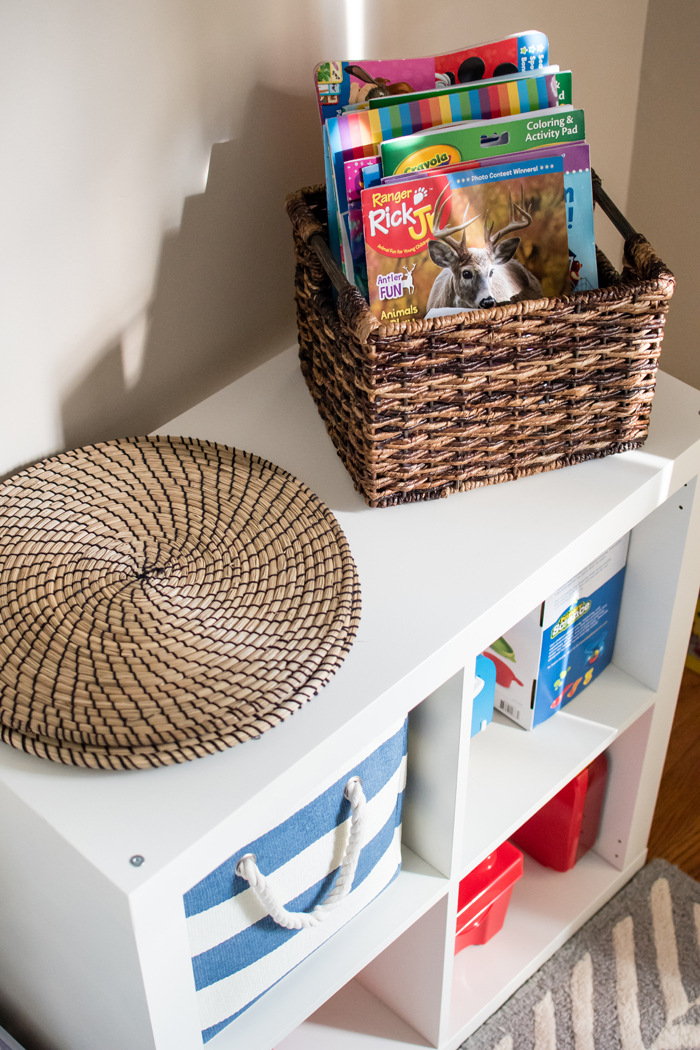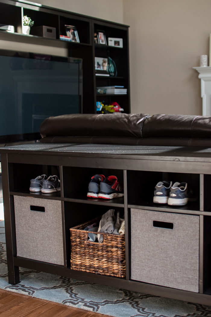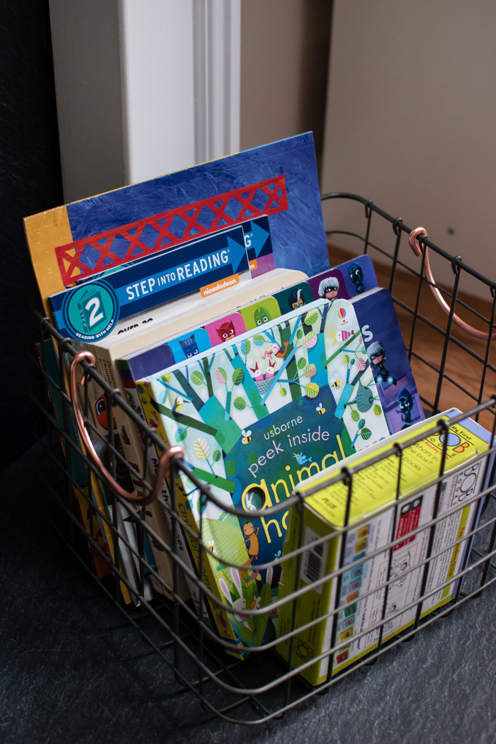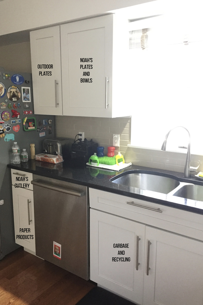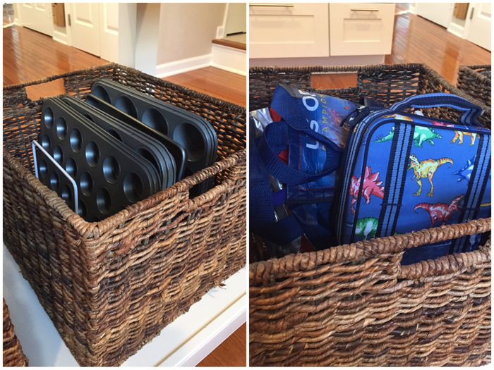 I thought I'd share a few helpful tricks that really work for us. First, is having an extra hamper that I keep in the laundry room. Noah prefers to get dressed for school downstairs after he eats breakfast. So every morning, his pajamas get thrown into the laundry room hamper instead of having to run back upstairs to his room. It also comes in handy when Noah inevitably takes off his socks or I have a dirty kitchen towel. My second trick is so new that it isn't even shown in the photo. I recently added a small trashcan to the bottom of the linen closet. While I haven't really had a problem emptying pockets (yet), I do use it for cleaning out the lint. I used to avoid this for way too long because it was a pain to have to take the lint trap to the kitchen (even though it was just around the corner). But now that I have a trash can right there, I empty it out more often. When it's full, I empty it into the large kitchen garbage. I love when super simple additions make a big impact!