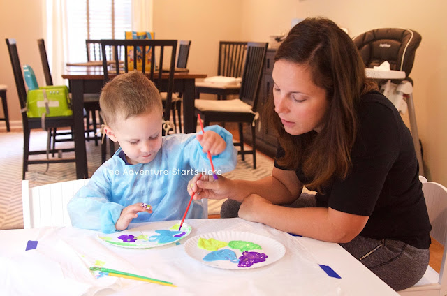 The next craft we did was a paper plate peacock. I found the idea here, and hers turned out WAY better! If you want full instructions, I suggest visiting her blog ;) Regardless, Noah loved painting the peacock, so it was a win in my book.