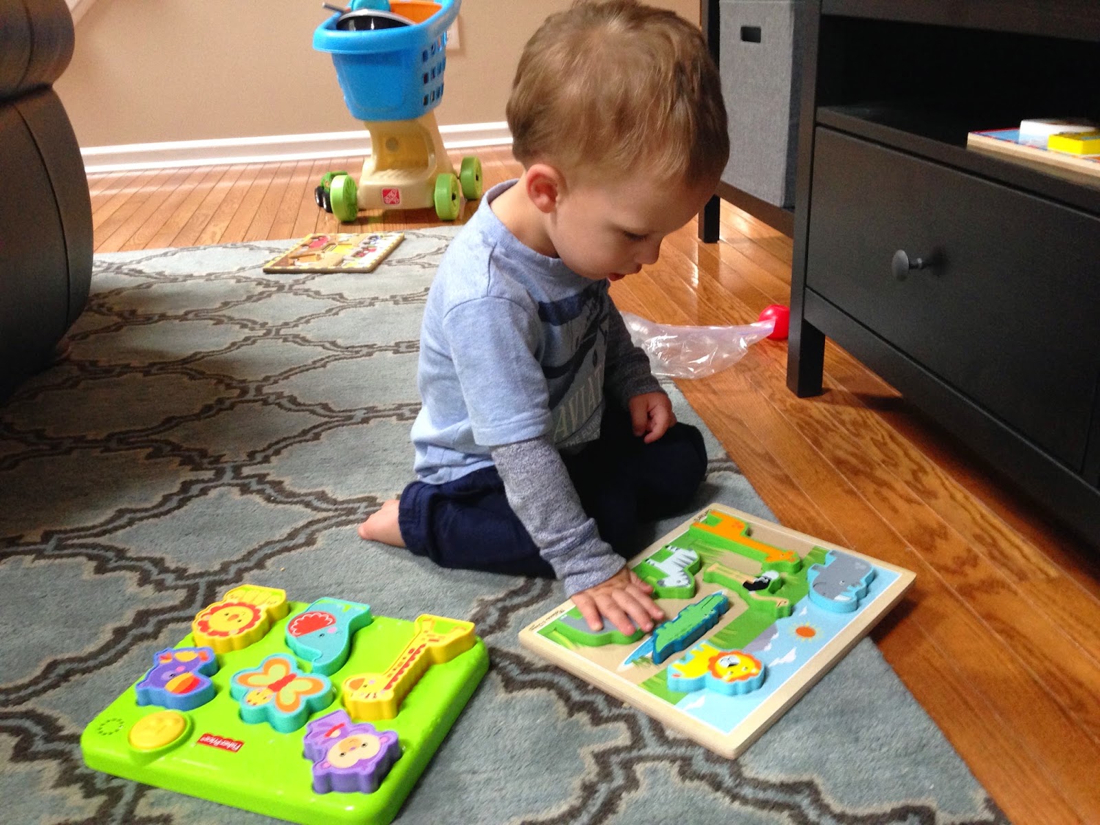 Finally, we made this little bird nest craft. It was super simple. I just cut a nest out of brown construction paper. Then using a small dixie cup I cut out 4 small circles (in 2 different colors for our 2 birds). I also folded a small piece of orange paper and then cut two "v's" to make the beaks. Then I just cut a bunch of pieces of brown yarn (for the twigs) and picked out a few small feathers. Then it was all about using some glue to assemble the birds. Noah and I worked together on this craft. He would glue some parts while I would apply the glue for the smaller parts like the eyes and beaks.